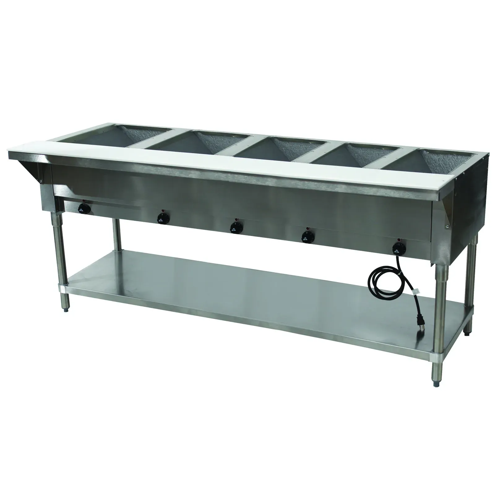 This hot food table features five 12" x 20" wells, each capable of accommodating pan inserts up to 7-3/4" deep, allowing you to keep a variety of dishes warm and ready to serve. Each well is equipped with individual infinite controls, giving you precise temperature management to ensure your food stays at the perfect serving temperature.