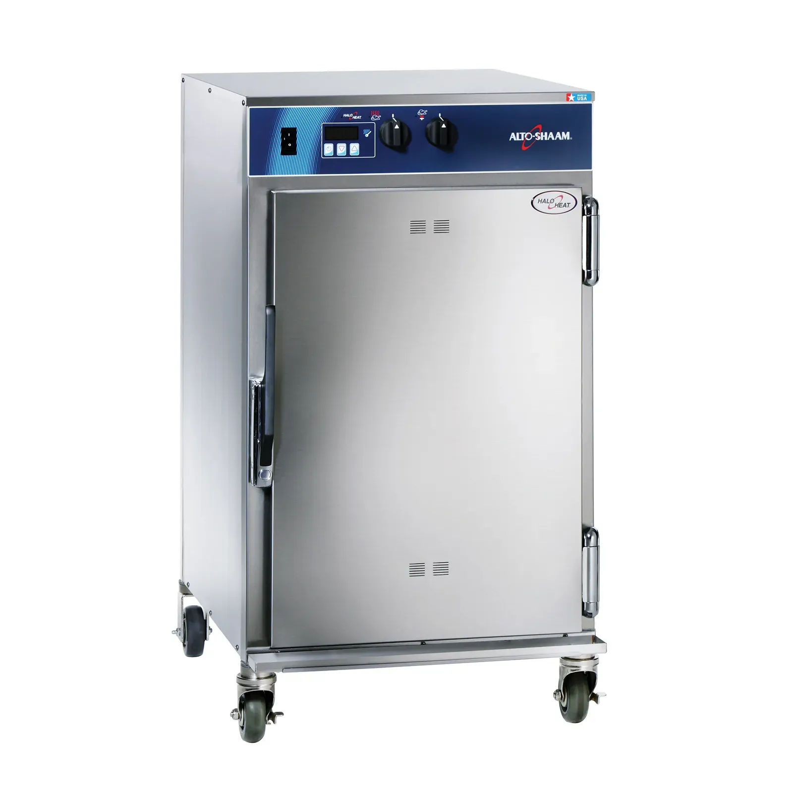Introducing the Alto-Shaam 1000-TH-II Cabinet, Cook / Hold / Oven, designed to simplify restaurant operations. This electric oven features Halo Heat Slo Cook & Hold technology, ensuring low-temperature cooking with a 120 lb. capacity, perfect for commercial restaurant use. With the ability to accommodate eight full-size sheet pans and three stainless steel wire shelves, this oven offers ample space for cooking and holding a variety of dishes. The simple controls, including an ON/OFF power switch, make operation effortless, while the heavy-duty stainless steel construction ensures durability and longevity. Equipped with 3-1/2" casters, including two rigid and two swivel with brakes, this oven is easy to maneuver and secure in any kitchen layout. Additionally, the Alto-Shaam 1000-TH-II is EcoSmart, cULus, NSF, CE, IPX3, TUV NORD, and EAC certified, guaranteeing its quality and safety. Upgrade your restaurant's cooking capabilities with the Alto-Shaam 1000-TH-II Cabinet, Cook / Hold / Oven.