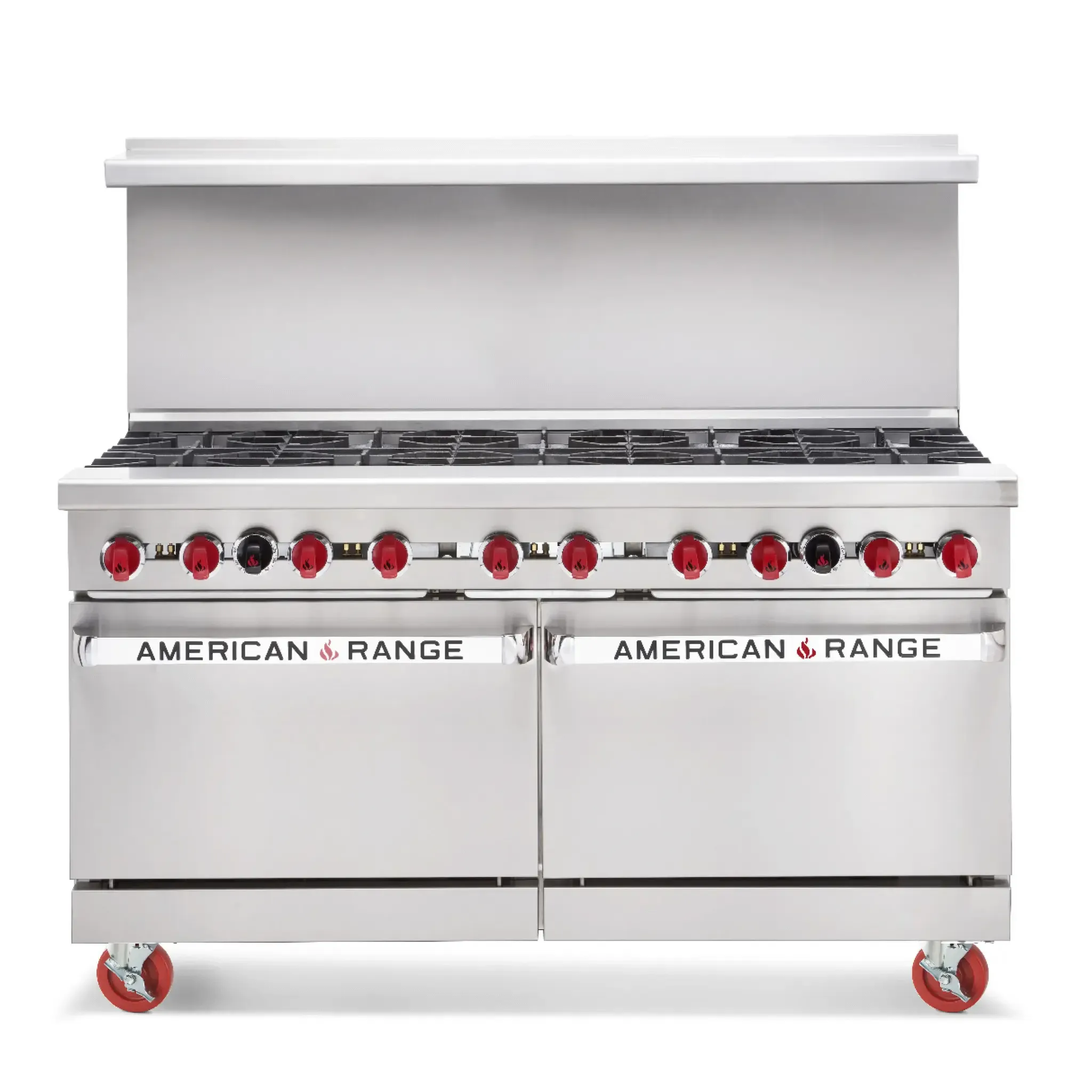 Cook with flair using top-quality equipment with the American Range AR-24G-6B Range. This heavy-duty restaurant range is designed to meet the demands of a commercial kitchen. With a 60" size, it offers ample cooking space for busy restaurants. The range features a 24" griddle with a 5/8" thick grill plate, perfect for preparing delicious breakfast items or grilled sandwiches. It also includes six 32,000 BTU open burners, providing high heat for boiling, saut ing, and simmering. The two 26-1/2" ovens with one rack each allow for baking multiple dishes simultaneously. Made in the USA, this range is built to last with its stainless steel front, sides, and high shelf. The 6" chrome plated legs ensure stability and easy cleaning. Trust American Range for exceptional quality and performance in your restaurant kitchen.