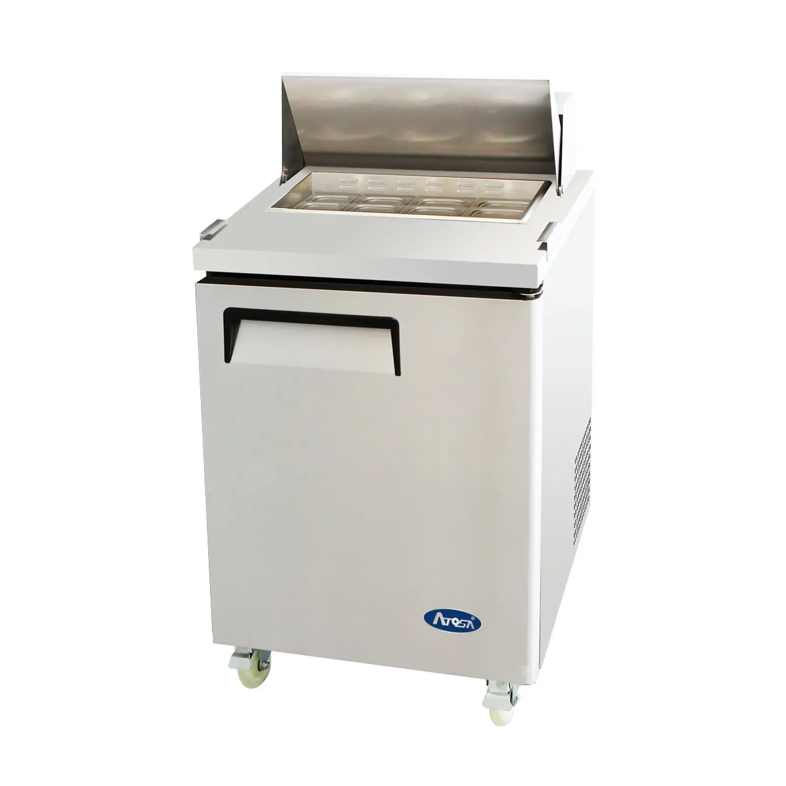 Introducing the Atosa USA, MSF8301GR Refrigerated Counter, Sandwich / Salad Unit - the perfect addition to drive restaurant profitability. This one-section unit is designed to meet the demands of a busy commercial kitchen, offering a spacious 7.2 cu. ft. capacity to store and organize your sandwich and salad ingredients. The unit comes with eight 1/6 stainless steel pans, allowing you to easily access and assemble your menu items. With a temperature range of 33° to 40°F and a digital temperature control, you can ensure that your ingredients stay fresh and at the optimal temperature. The solid hinged self-closing door and adjustable shelf provide convenience and flexibility in storage. The 10" poly cutting board offers a convenient workspace for food preparation. Made with a stainless steel interior and exterior, this unit is not only durable but also easy to clean. The ventilated refrigeration system and automatic evaporation ensure efficient cooling and hassle-free maintenance. With its compact size and 5" casters, this unit can be easily moved and positioned wherever it's needed in your kitchen. Trust Atosa USA to deliver reliable and high-quality refrigeration solutions for your restaurant.