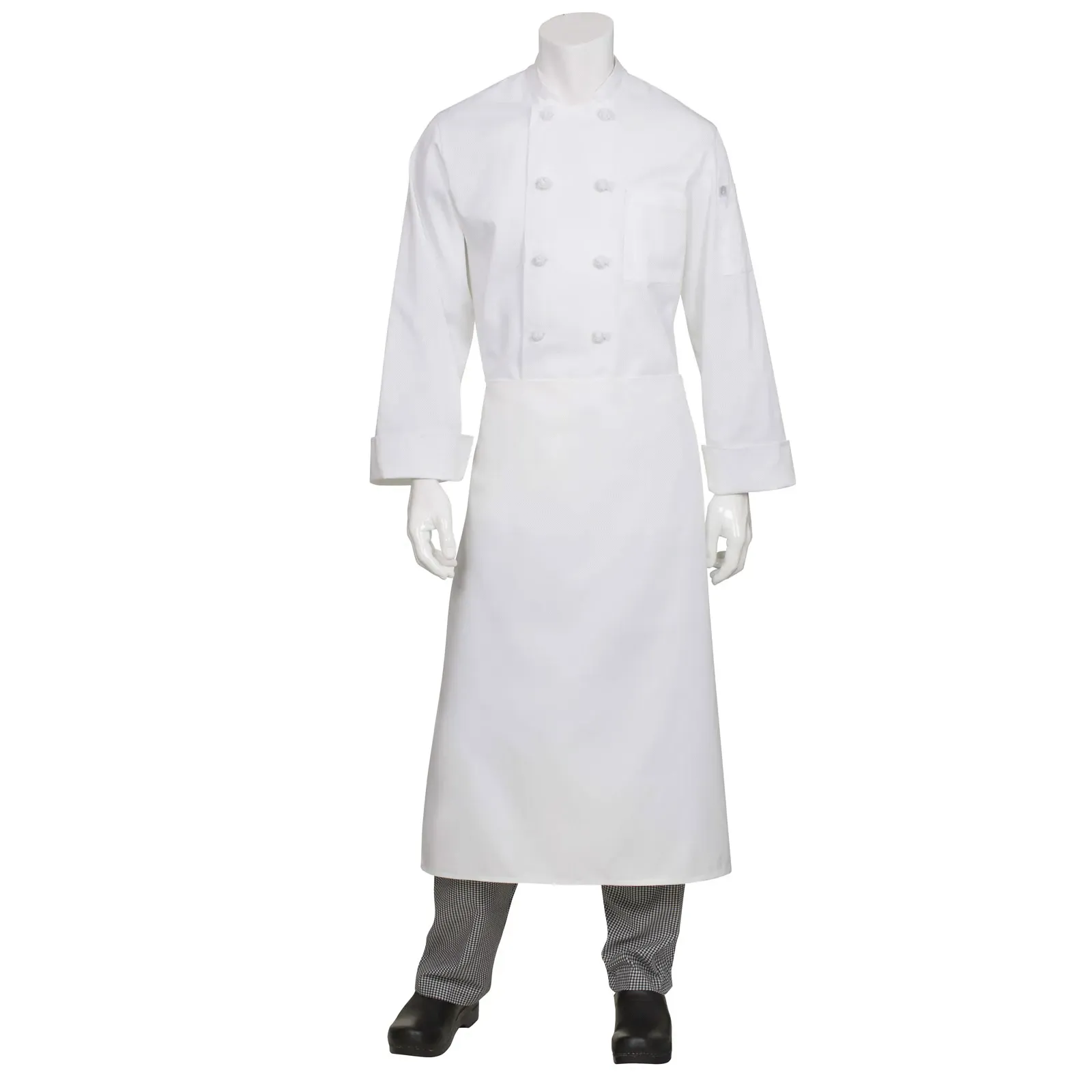 Introducing the Chef Works CFLAWHT0 Waist Apron, a must-have for culinary mastery in any commercial restaurant. Designed with the comfort and durability your back-of-house staff needs, this full-length apron is cut a little longer and features extra wide ties for a perfect fit. Made from a pre-tested poly/cotton blend, it offers exceptional strength and durability, ensuring it can withstand the demands of a busy kitchen. With its 40"L x 38"W size and no pocket design, this apron provides ample coverage and allows for easy movement. Whether it's protecting uniforms from spills or keeping essentials close at hand, this waist apron is an essential tool for any chef. Elevate your culinary experience with the Chef Works CFLAWHT0 Waist Apron.