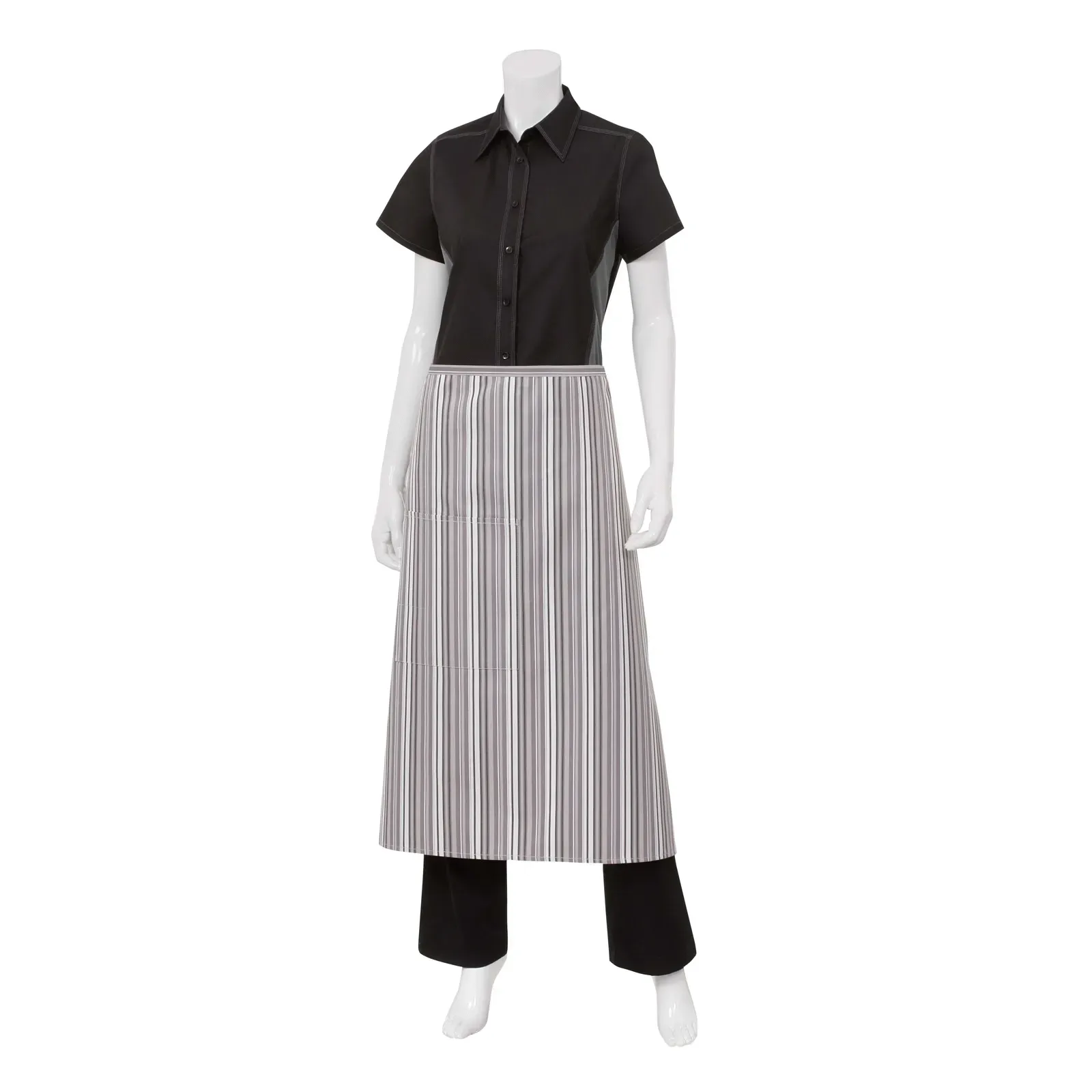 Boost kitchen morale with chef finesse using the Chef Works F24BWP0 Waist Apron. This stylish and functional apron is designed to meet the demands of a commercial restaurant setting. Made with a durable 65/35 poly/cotton blend, it can withstand the rigors of a busy kitchen while maintaining a professional appearance. The black apron with white pinstripes adds a touch of sophistication to any uniform. The apron features a patch pocket with a pencil divide, allowing for easy access to essential tools and utensils. With a length of 32" and a width of 27-1/2", it provides ample coverage and protection. Whether you're a chef, server, or bartender, the Chef Works F24BWP0 Waist Apron is a must-have for any commercial restaurant.