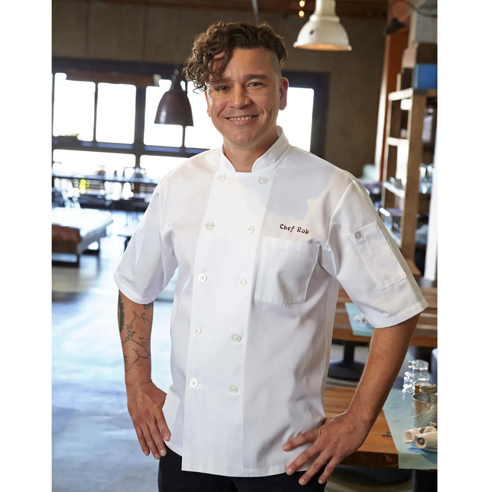 Unleash culinary passion in uniform with the Chef Works PCSSWHT3XL Chef's Coat. Designed for culinary students of all levels, this entry-level chef coat is a must-have in every chef's wardrobe. With its classic fit and double-breasted style, this coat exudes professionalism and reliability. The short sleeves and matching buttons add a touch of simplicity, making it perfect for fast-paced commercial restaurant environments. The left chest patch and thermometer pocket provide convenient storage for essential tools, ensuring efficiency and organization in the kitchen. Made from a durable 65/35 poly/cotton blend, this coat is built to withstand the demands of a busy kitchen. Whether you're a seasoned chef or just starting your culinary journey, the Chef Works PCSSWHT3XL Chef's Coat is the ideal choice for comfort, style, and functionality in a commercial restaurant setting.