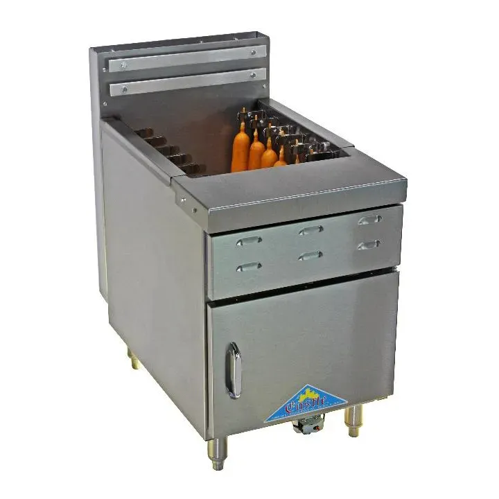 Set the stage for culinary brilliance with the Comstock-Castle CDFL-C-1 Corn Dog Fryer. Designed for commercial restaurant use, this countertop gas fryer is a must-have for any establishment looking to serve up delicious corn dogs. With a generous 60-70 lb. fat capacity, you can fry up a large batch of corn dogs to satisfy hungry customers. The fryer features a snap action thermostat and standing pilot for precise temperature control, ensuring perfectly cooked corn dogs every time. The stainless steel fry tank and exterior are not only durable but also easy to clean, making maintenance a breeze. The adjustable stainless steel legs provide stability and versatility in any kitchen setup. With 80000 BTU of power, this fryer delivers quick and efficient cooking. Made in the USA by Comstock-Castle, you can trust in the quality and authenticity of this corn dog fryer. Upgrade your restaurant's menu with the Comstock-Castle CDFL-C-1 Corn Dog Fryer and delight your customers with crispy, golden corn dogs.