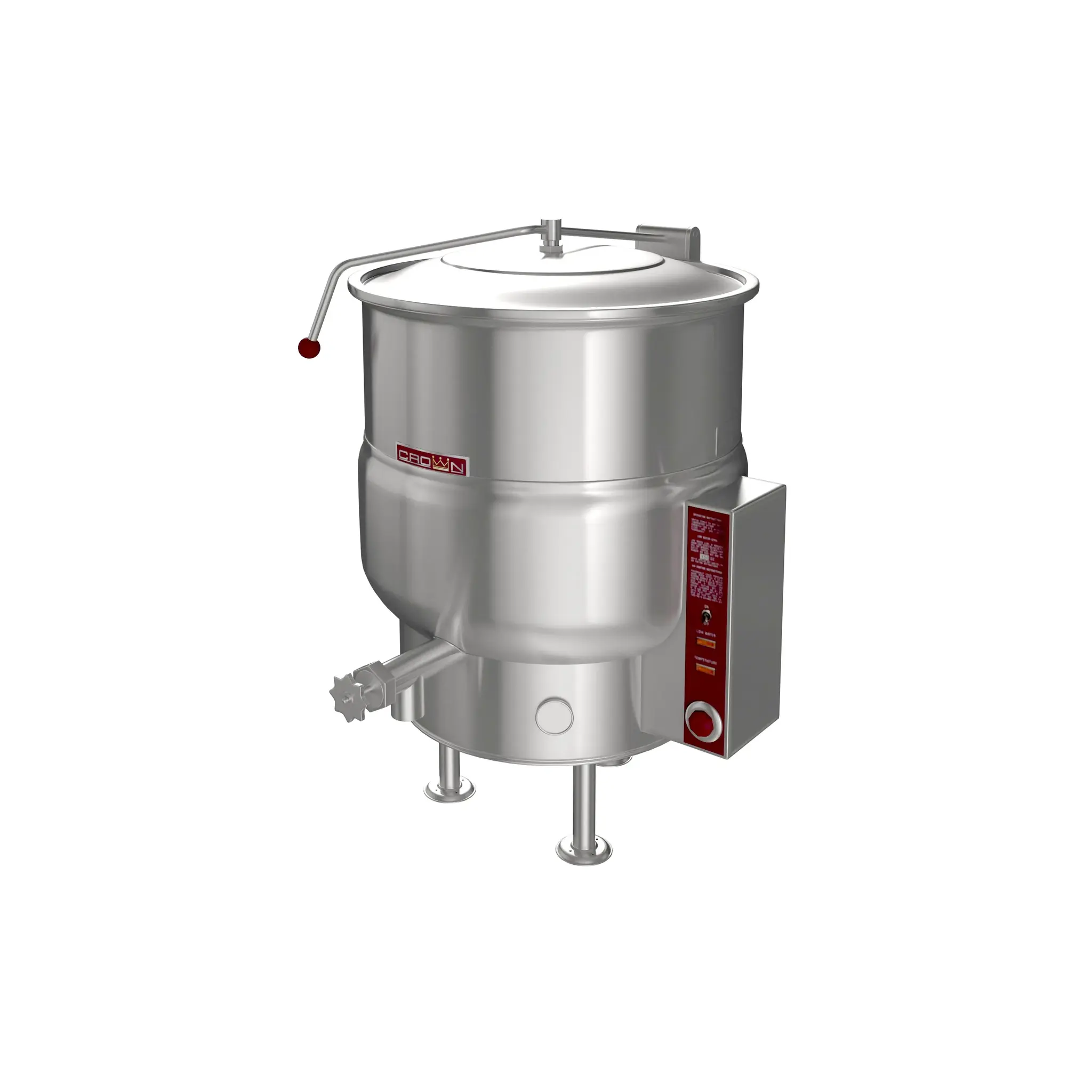 Introducing the Crown kettles, a cutting-edge solution for culinary excellence. Designed with a double-walled interior, these kettles feature a steam jacket that surrounds the lower two-thirds, ensuring optimal heating efficiency. The factory-sealed jacket is filled with distilled water for consistent performance. The innovative hemispherical bottom design enhances heat circulation, delivering superior cooking results every time. Built to last, this unit is constructed from durable, all-welded type 304 stainless steel with a sleek #4 finish. The interior is crafted from standard 316 stainless steel, specifically engineered for high-acid cooking applications. User-friendly controls are integrally mounted and include a power switch, thermostat, pilot light, low water indicator, vacuum/pressure gauge, safety relief valve, and low water shut-off—providing you with all the safety and convenience you need. Each kettle comes equipped with removable heating elements, maximizing versatility in your kitchen. Enjoy additional convenience features like a 2-inch (50 mm) sanitary draw-off valve with a perforated strainer and a spring-assisted hinged stainless steel domed cover for easy access. With a temperature range of 165°F to 285°F (74°C to 140°C) and a maximum pressure of 50 psi (345 kPa), the Crown kettle is engineered to meet the demands of any commercial kitchen. Elevate your cooking with the reliability and innovation of Crown kettles, designed to enhance your culinary creations.