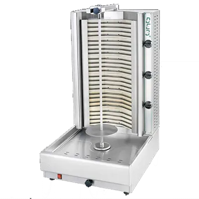 Ideal for busy restaurant kitchens, this gyro machine saves time and effort. Its user-friendly design makes it easy to operate, and the compact size ensures it won't take up valuable counter space. Whether you're a seasoned chef or a culinary enthusiast, Eurodib USA's DE3A gyro machine is a must-have tool for elevating your restaurant's menu and impressing your customers with delectable gyro creations.
