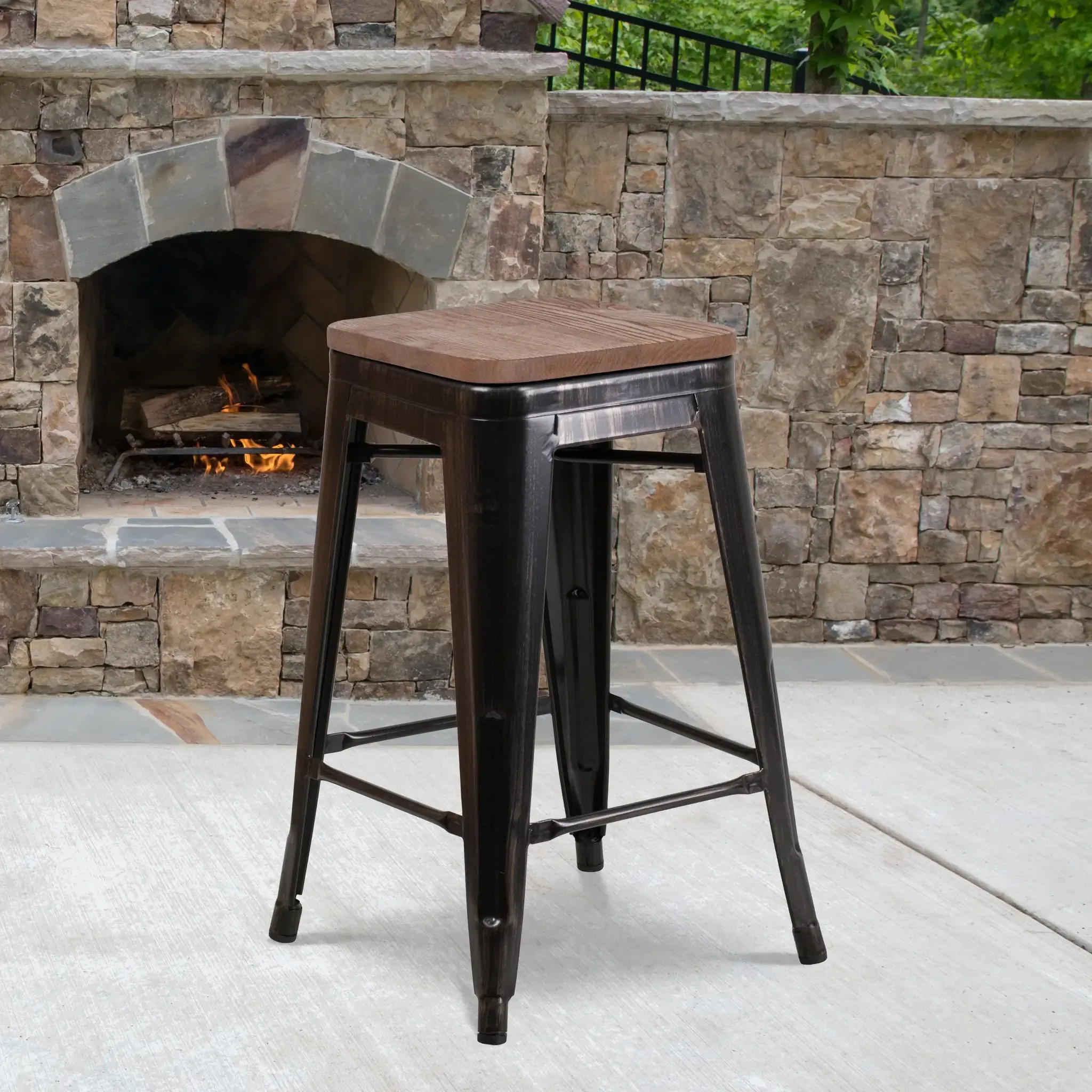 Save on space with this Backless Metal Bar Stool with wood seat. The clean lines and simple design of this square, industrial style stool will look great in your kitchen or inside your bar/restaurant. Designed to stack, this stool is an ideal choice in the restaurant industry. A cross brace underneath the seat adds extra stability and features plastic caps that prevent the finish from scratching when stacked. The lower support brace doubles as a footrest, and floor glides protect your floor by sliding smoothly when moving it. Designed for both commercial and residential use, this bar height stool will provide refreshing rustic feel with its metal and wood features.