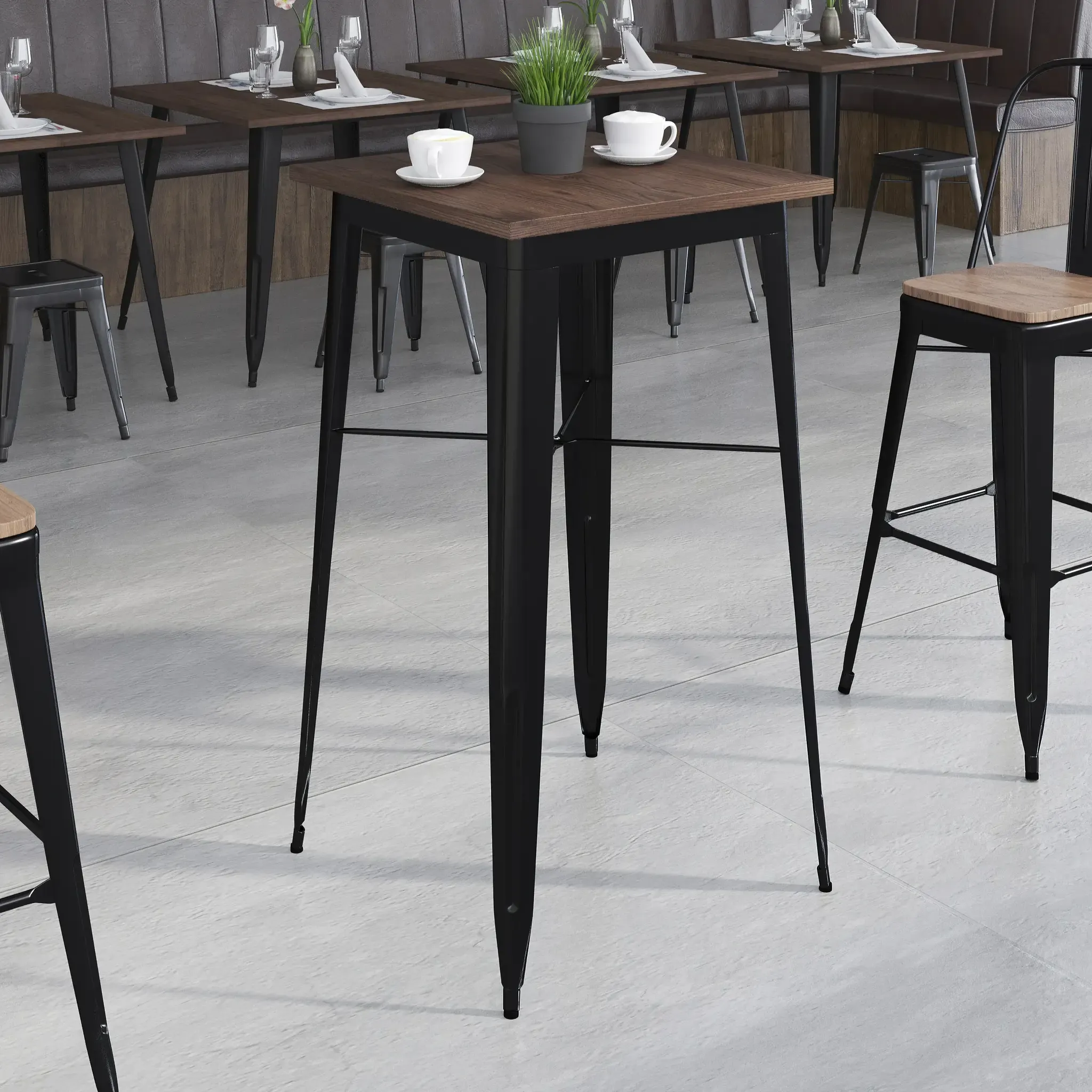 Turn your dining area into a showcase with this industrial style bar table. The compact sized bar table won't take up a lot of floor space and mixes well with standard height tables. It features a gorgeous textured surface with cross-braces that gives it increased stability. Rubber floor glides protect your floor by sliding smoothly when you need to move the table. Mix and match this style table with any metal stool, even using different colors. The possibilities are endless with the multitude of environments in which you can use this table, for both commercial and residential spaces.
