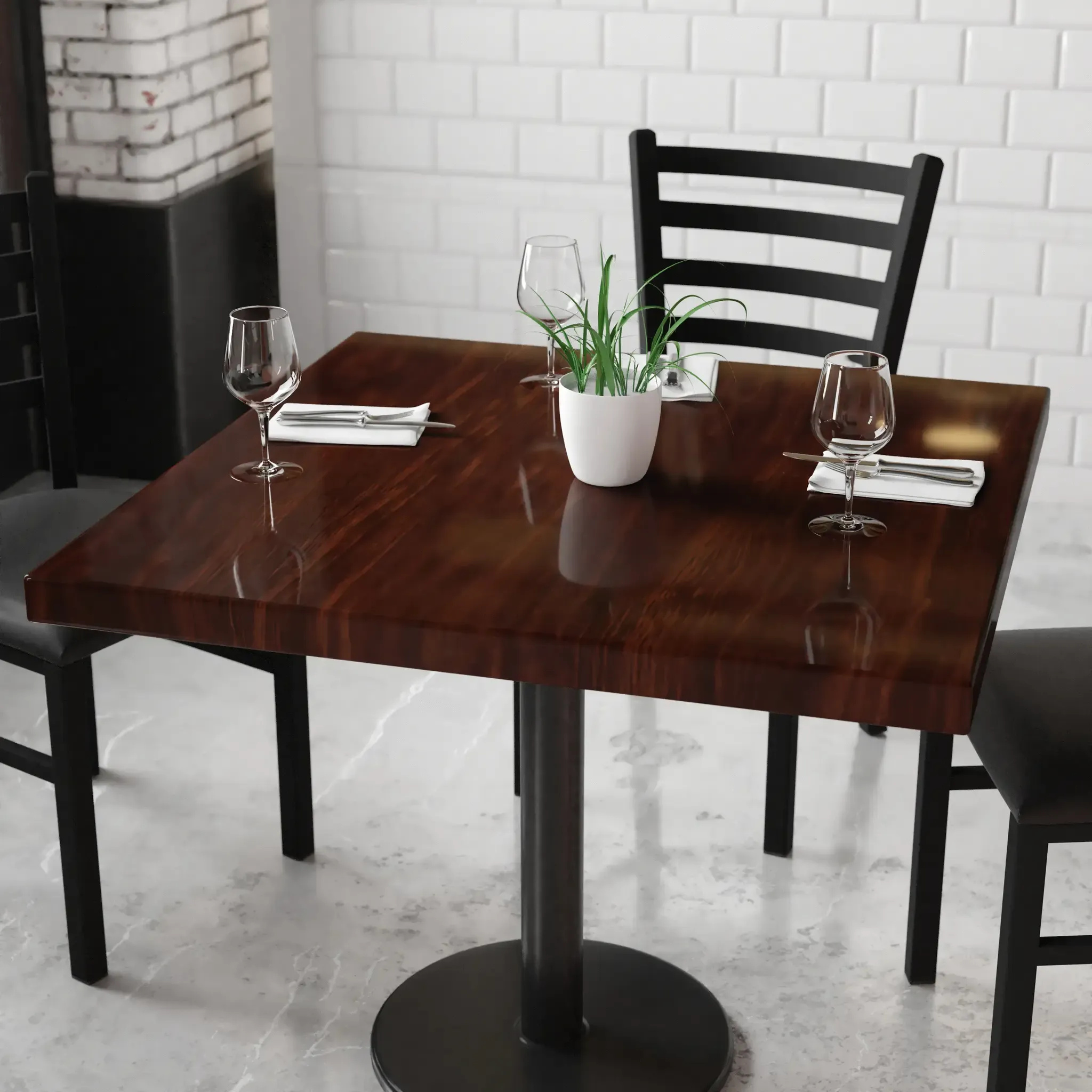 Your restaurant should have reliable dining tables that will last throughout the years while maintaining their beauty. Resin table tops are extremely durable, covered in a polyester resin coating make them resistant to heat and scratches. The glossy exterior is easy to clean using a mild detergent and are kept in a spotless condition by wiping down with a dry cloth afterward. If you're seeking a non-porous table for your dining area then a resin table top will withstand the daily usage in restaurants and hospitality industries. Update your restaurant or furnish your new location with this durable square restaurant table. Ideal for restaurants, bars, hotels, lounges, break rooms and kitchen in your home.