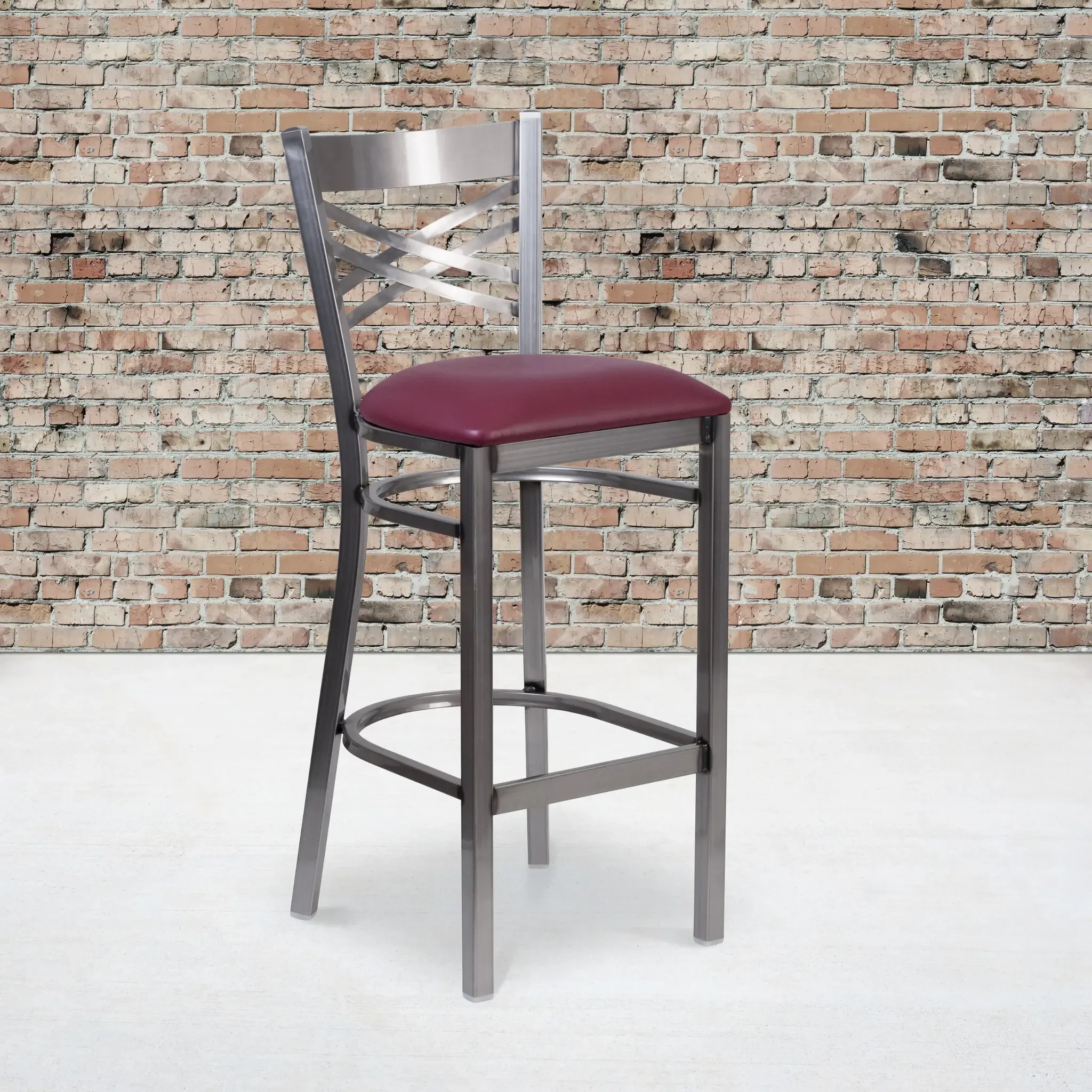 Create a first-rate dining experience by offering your patrons great food, service and attractive furnishings. Metal bar stools are a popular choice for furnishing restaurants, lounges, pool halls, bars and other high traffic establishments. This stool is easy to clean, which is an important aspect when it comes to a business. Built to withstand the everyday hustle and bustle in the restaurant and hospitality business, these dining stools will also look great in your home. The beautiful wood seat and "X" back design will keep guests comfortable. The frame is stabilized using welded joint assembly and two curved support bars which includes a footrest to improve posture. The floor glides help protect your floors and ensure smooth gliding. Use this stool in your dining room or home bar to give your decor a fresh look. The simple and lightweight design of this chair is a must have, whether used in the home or your commercial business.