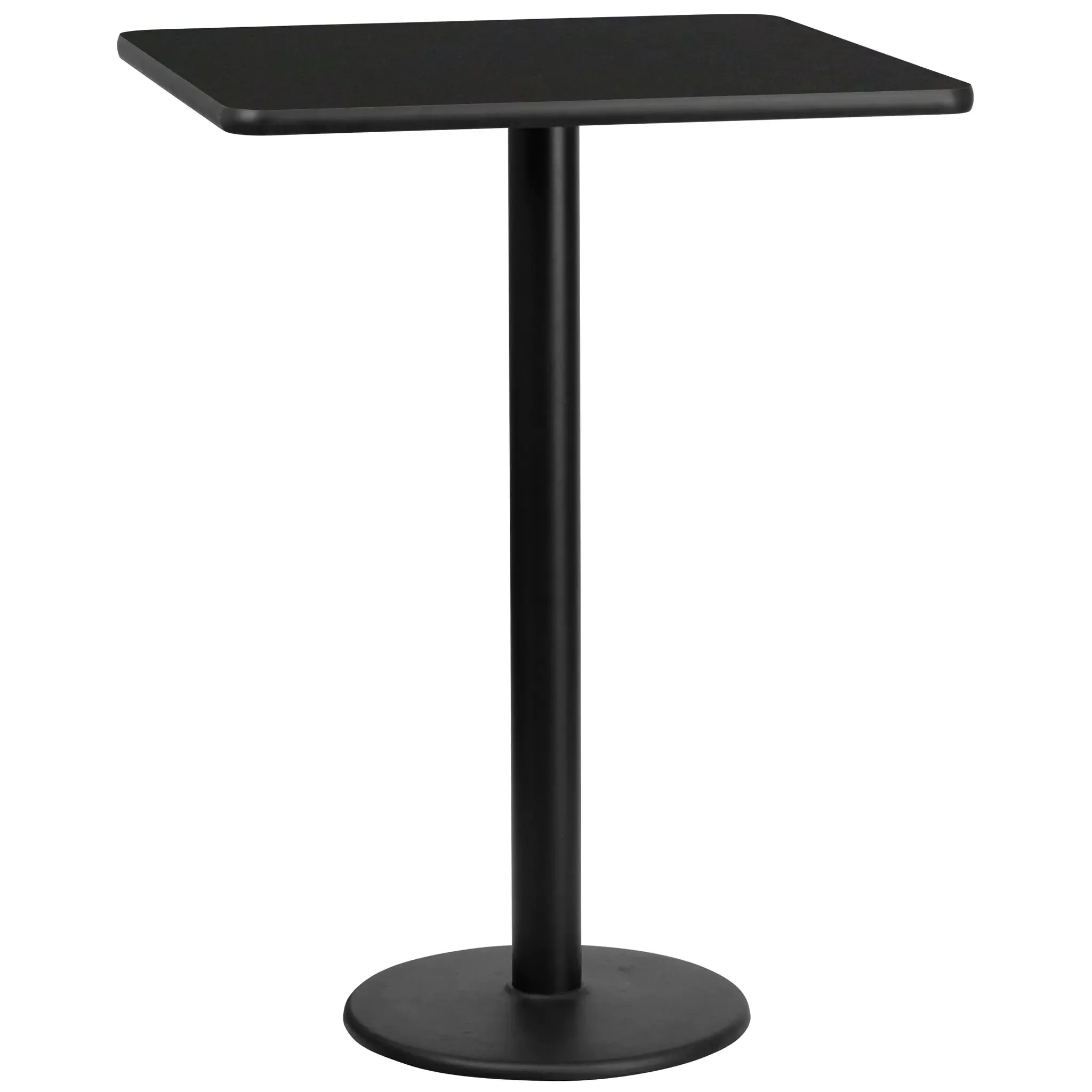Complete your restaurant, break room or cafeteria with this bar height table top and base configuration. This set is designed for commercial use to withstand the daily rigors in the hospitality industry. This set will also make a great option for your home as a dining table or in the rec room. The reversible black or mahogany top allows you to choose your color of choice and then affix to the base. Surface is heat, scratch and moisture resistant. Use a mild detergent and water, dry clean to keep your tables spotless. Whether you are just starting your business or upgrading your furniture this bar table set will complete the look.