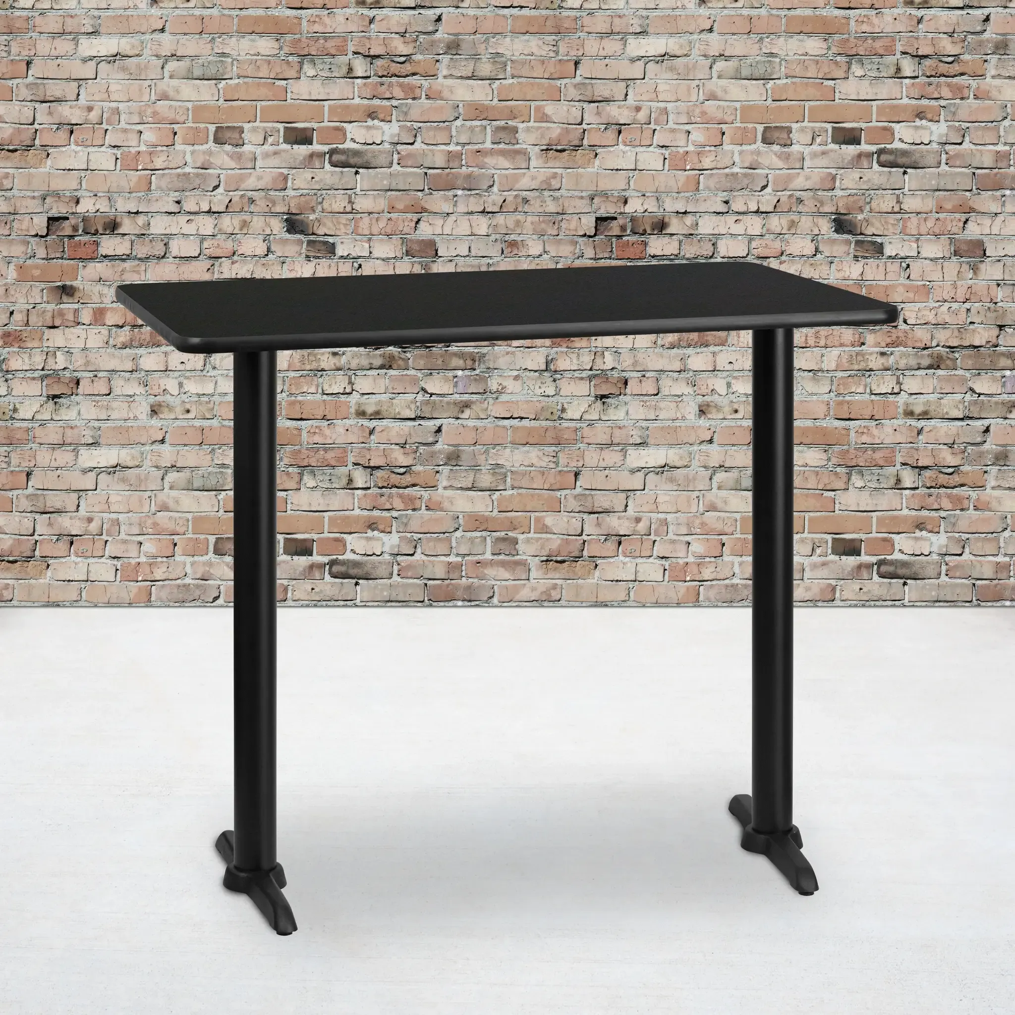 Complete your restaurant, break room or cafeteria with this bar height table top and base configuration. This set is designed for commercial use to withstand the daily rigors in the hospitality industry. This set will also make a great option for your home as a dining table or in the rec room. The reversible black or mahogany top allows you to choose your color of choice and then affix to the base. Surface is heat, scratch and moisture resistant. Use a mild detergent and water, dry clean to keep your tables spotless. Whether you are just starting your business or upgrading your furniture this bar table set will complete the look.