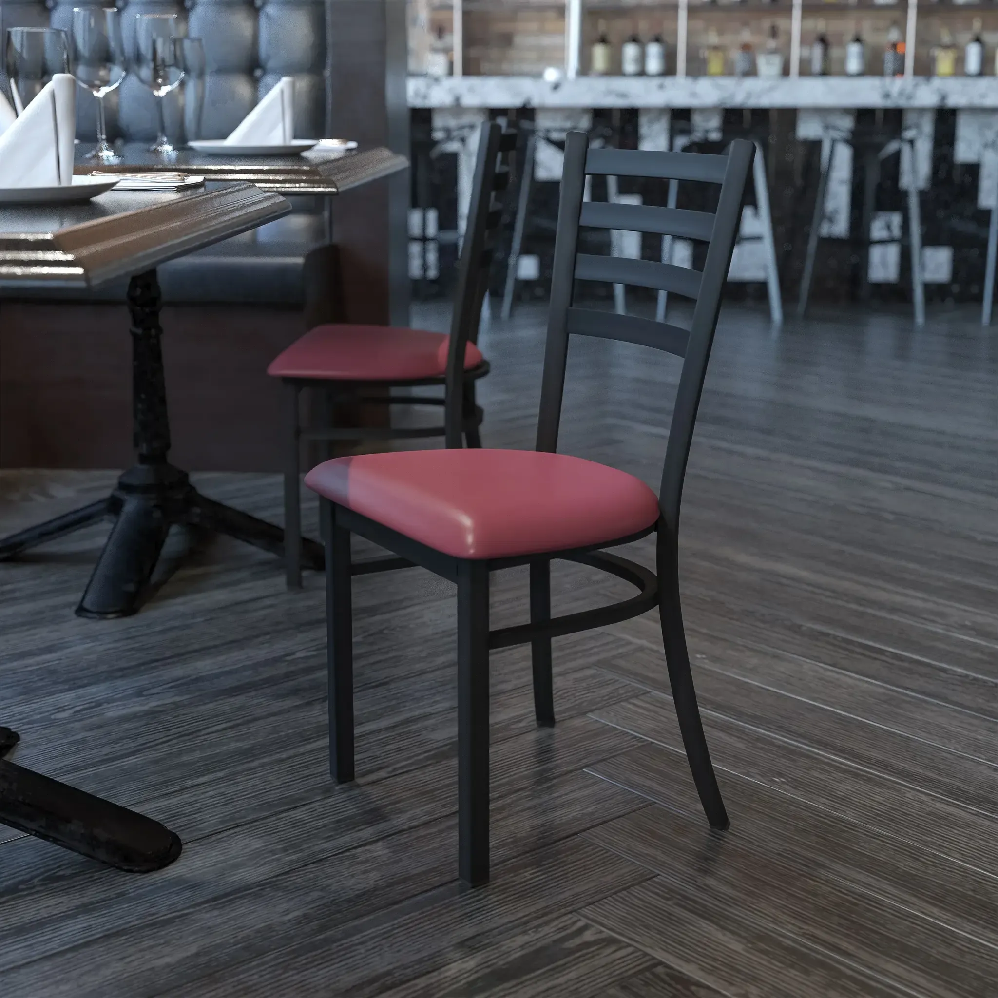 Create a first-rate dining experience by offering your patrons great food, service and attractive furnishings. Commercial furniture needs to be durable and low maintenance so metal chairs are a popular choice for furnishing restaurants, pool halls, lounges, bars and other high traffic establishments. This upholstered chair is easy to clean, which is an important aspect when it comes to a business. Built to withstand the everyday hustle and bustle in the restaurant and hospitality business, these dining chairs will also look great in your home. The thick, foam padded seat and ladder back design will keep guests comfortable. The frame is stabilized using a welded support bar, while the floor glides help protect your floors and ensure smooth gliding. Use this chair in your kitchen or dining room to give your decor a fresh look. The simple and lightweight design of this chair will not disappoint, whether used in the home or your commercial business.