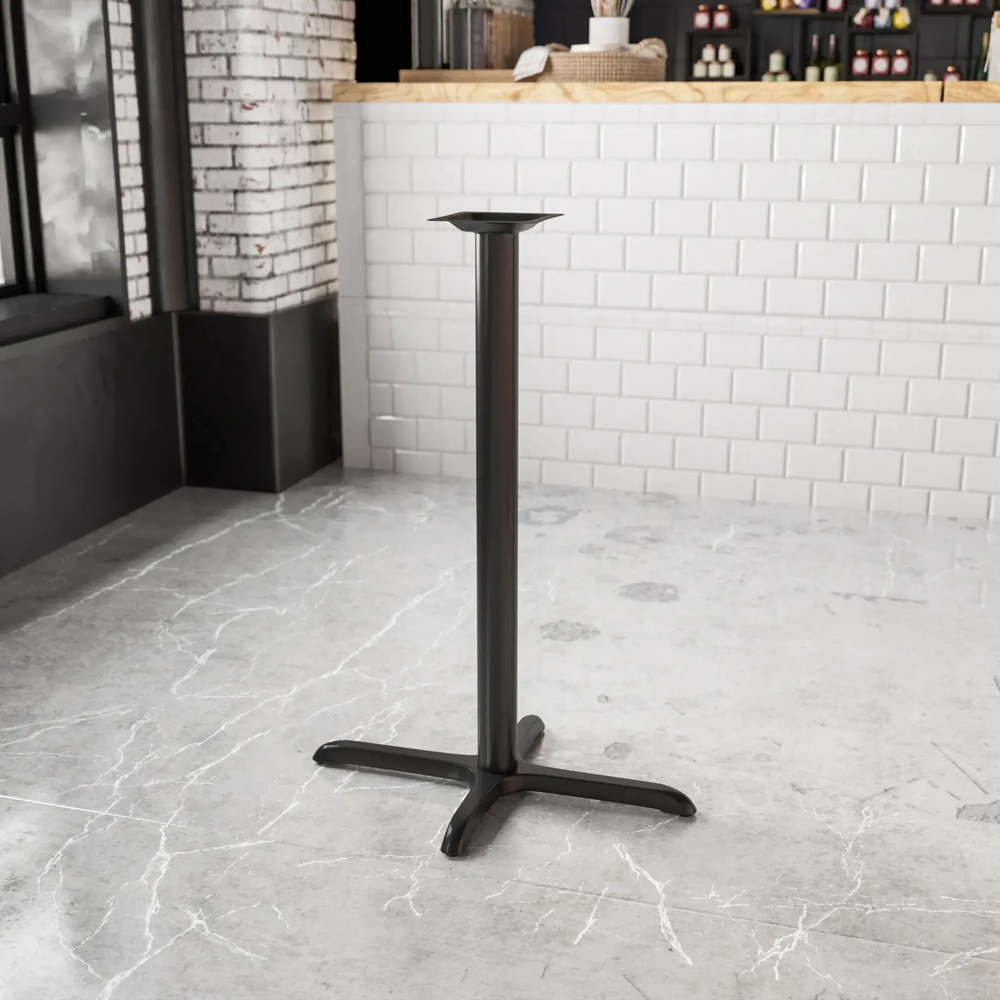 Complete your restaurant, break room or cafeteria with table bases and coordinating table tops. This table base is designed for commercial use so you will be assured it will withstand the daily rigors in the hospitality industry. The black powder coated finish of the base easily matches any bar or restaurant decor. Whether you are just starting your business or upgrading your furniture this table base will complete the look. Thanks to its cast iron construction, this piece will withstand years of heavy duty use making it ideal for commercial use.