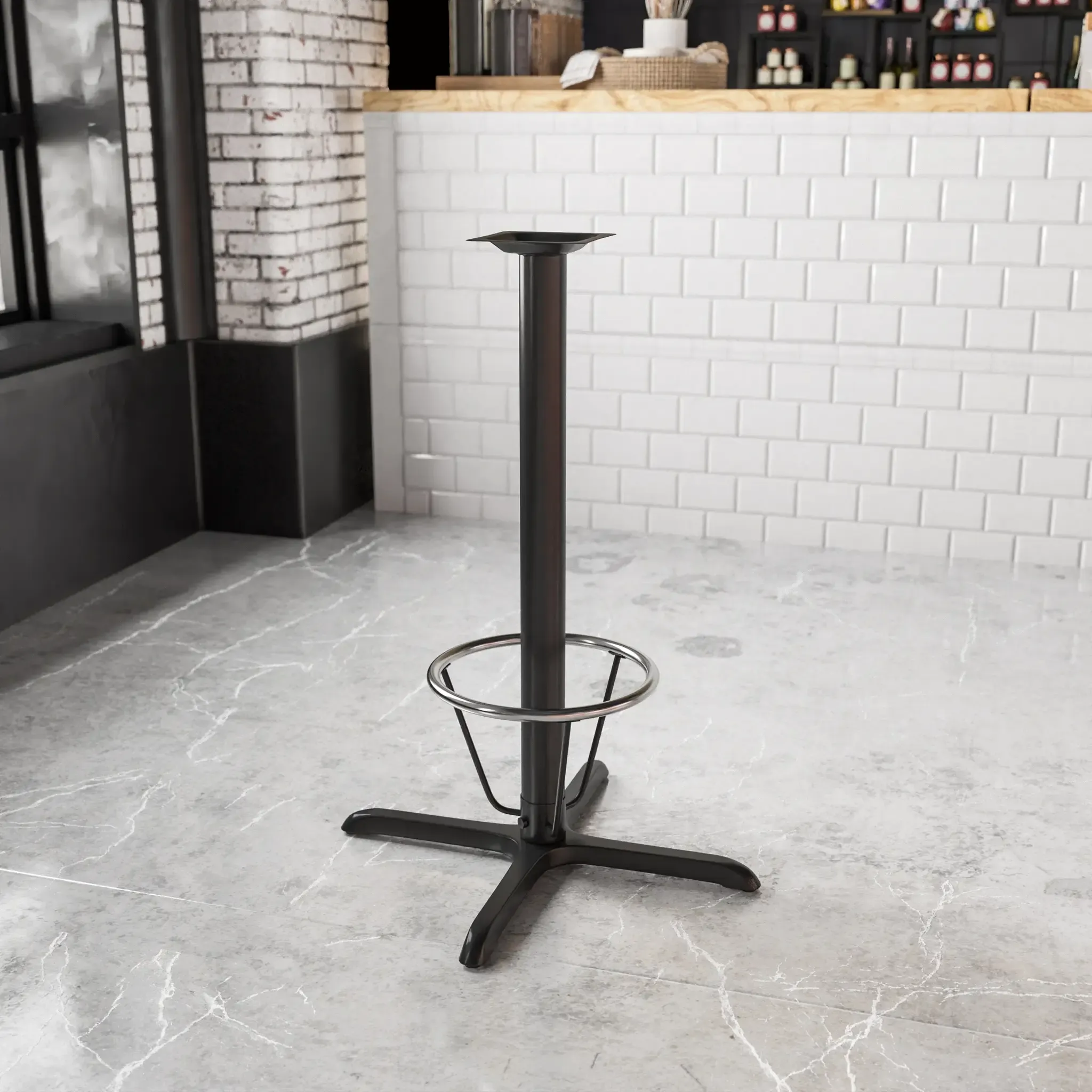 Complete your restaurant, break room or cafeteria with table bases and coordinating table tops. This table base is designed for commercial use so you will be assured it will withstand the daily rigors in the hospitality industry. The black powder coated finish of the base easily matches any bar or restaurant decor. Whether you are just starting your business or upgrading your furniture this table base will complete the look. Thanks to its cast iron construction, this piece will withstand years of heavy duty use making it ideal for commercial use.