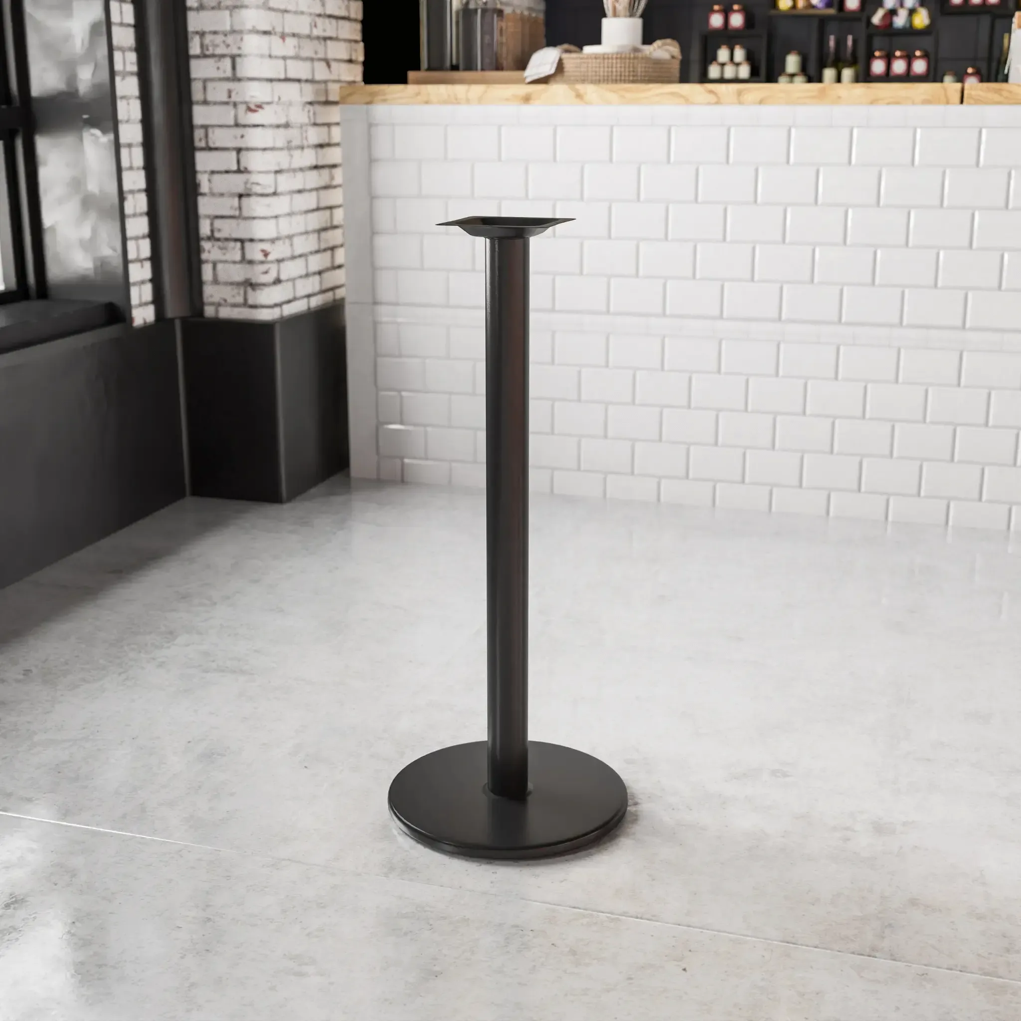 Get the look you want in your restaurant, break room or cafeteria with table bases and coordinating table tops. This bar height base features cast iron construction designed for commercial use so you can be assured it will withstand the daily rigors in the hospitality industry. The black powder coated finish of the base easily matches any bar or restaurant decor. Whether you are just starting your business or upgrading your furniture, invest wisely with this table base designed to withstand years of heavy use.
