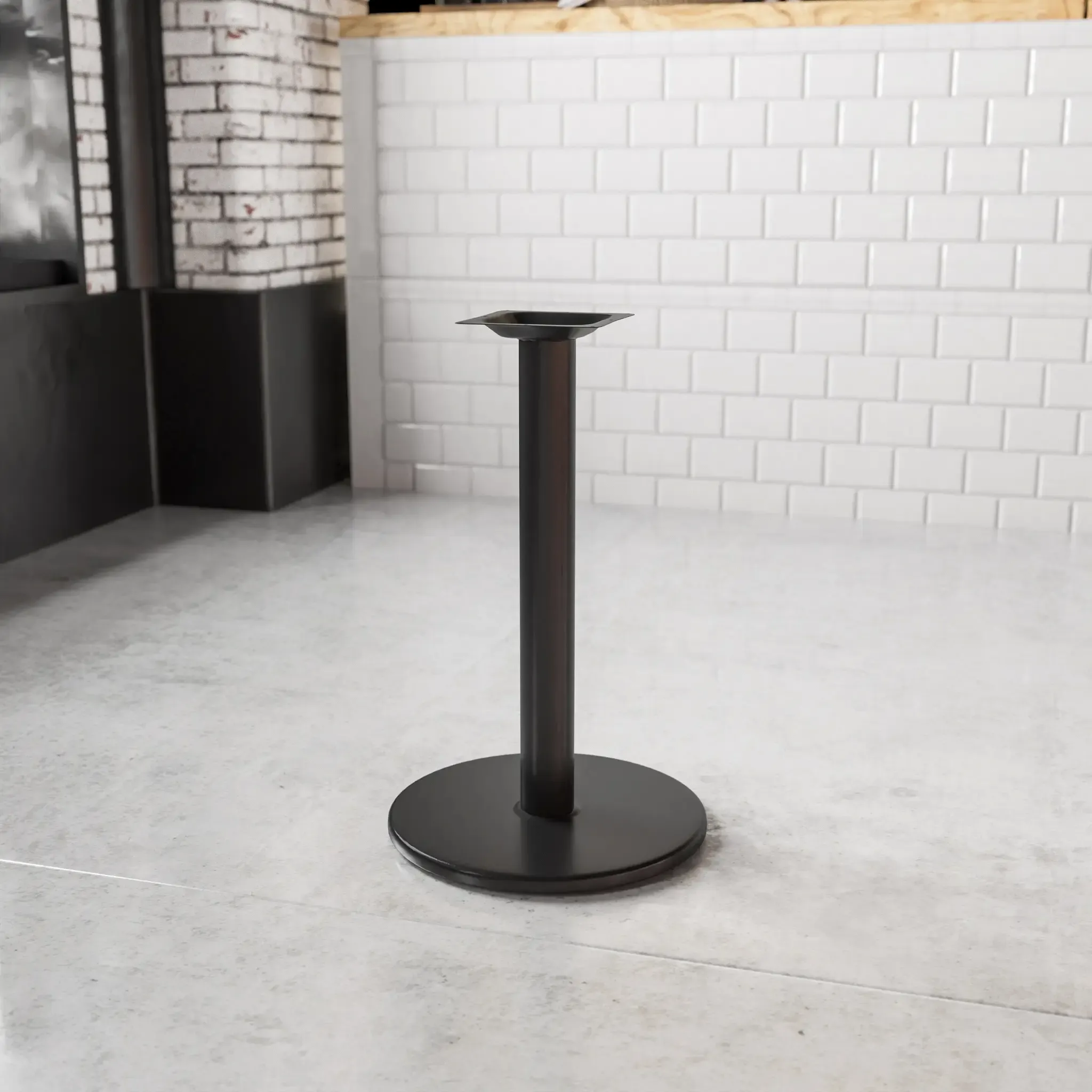 Get the look you want in your restaurant, break room or cafeteria with table bases and coordinating table tops. This table height base features cast iron construction designed for commercial use so you can be assured it will withstand the daily rigors in the hospitality industry. The black powder coated finish of the base easily matches any bar or restaurant decor. Whether you are just starting your business or upgrading your furniture, invest wisely with this table base designed to withstand years of heavy use.
