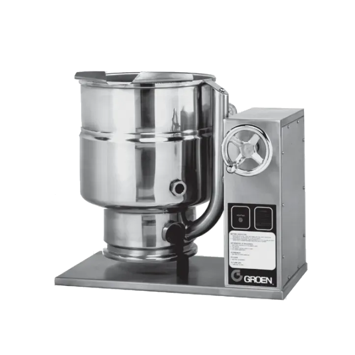 Invest in quality for flawless outcomes with the Groen TDBC-20C Electric Countertop Kettle. Designed for commercial restaurant use, this 20 quart capacity kettle is a game-changer in the kitchen. Its 2/3 jacket and IPX6 water rating ensure efficient heating and protection against water damage, while the 304 stainless steel liner guarantees durability and easy cleaning. The Classic controls provide precise temperature adjustments, allowing you to achieve perfect results every time. With a convenient crank tilt and faucet bracket, pouring and serving are effortless. The support console on the right adds stability and convenience during operation. Made in the USA with stainless steel construction, this Groen kettle is cULus and NSF certified, ensuring the highest standards of quality and safety. Elevate your restaurant's efficiency and productivity with the Groen TDBC-20C Electric Countertop Kettle.