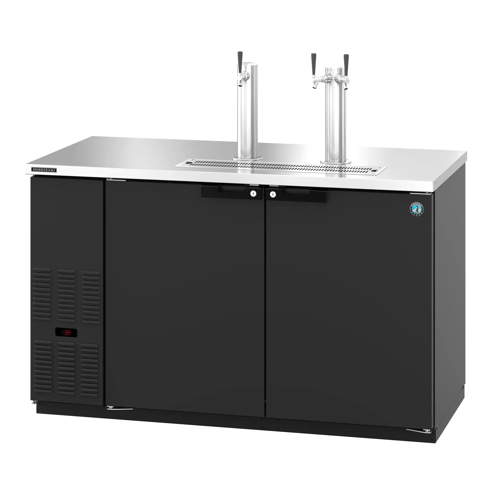 The durable stainless steel interior with led lights and thick stainless steel thresholds protect door frames when loading and unloading cabinet. While the black vinyl exterior front, sides and rear, plus a 18 gauge stainless steel top will endure many busy years! The DD59 fits: (3) 1/2 barrels (keg), and (2) polished stainless steel insulated towers with (3) plated brass faucets, it also features electronic controller with led display (°f or °c). Optional kits: (-S) stainless steel exterior - Made to Order. Cabinet fits: (2) 1/2 barrels and (1) 1/4 barrel, or (6) slim 1/4 barrels, or (8) 1/6 barrels, or (1) 1/2 barrel and (1) slim 1/4 barrel and (3) 1/6 barrels. The unit is ETL Safety (US & C) Listed, ETL Sanitation and includes a five years compressor warranty / three years parts and labor warranty.