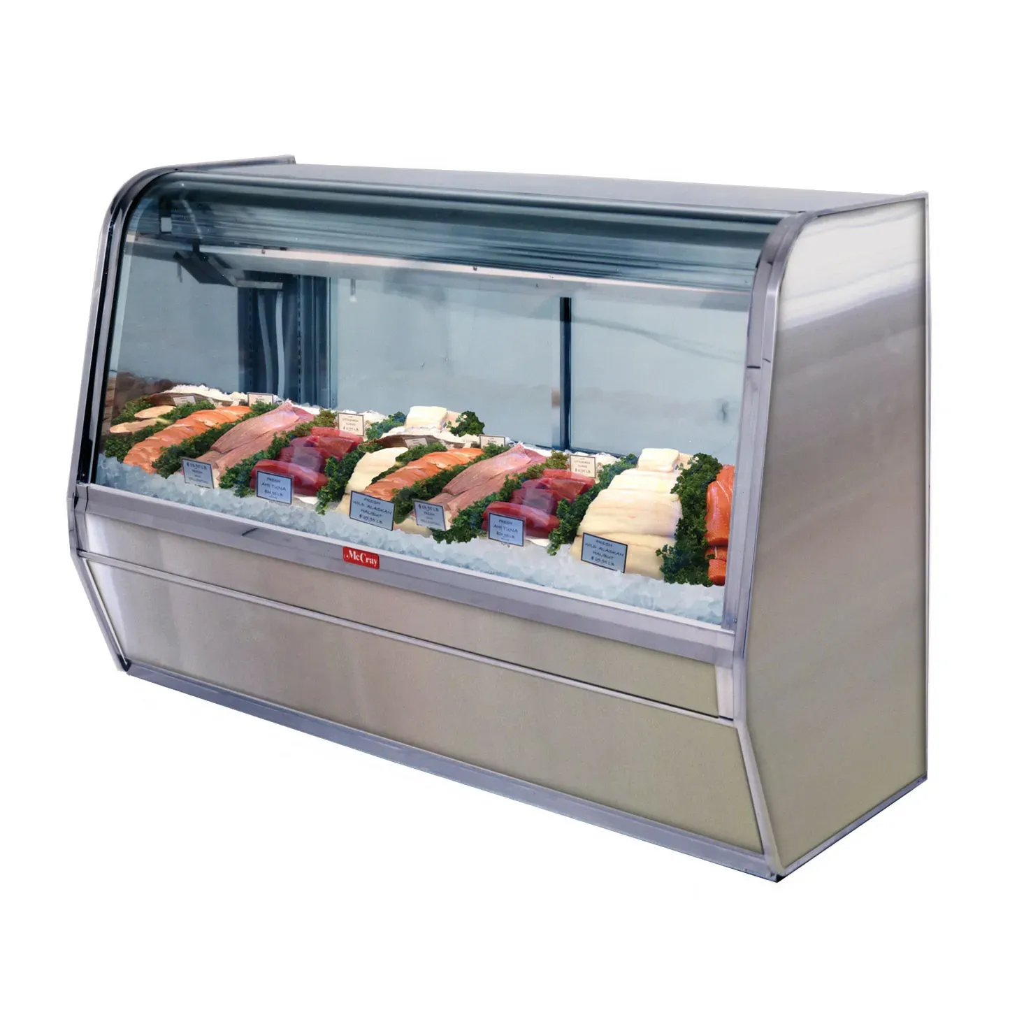 Experience kitchen innovation with the Howard-McCray SC-CFS32E-8C-S-LED Display Case, designed specifically for deli seafood and poultry. This curved glass service case boasts an endless design, providing a sleek and modern look to enhance any restaurant setting. The self-contained refrigeration system ensures optimal temperature control, keeping your products fresh and enticing to customers. The full-length gravity coil system guarantees even cooling throughout the case, maintaining the perfect conditions for your delicate seafood and poultry items. With three stainless steel ice pans featuring drains, you can easily display and serve chilled products. The stainless steel construction of the top, interior ends, and exterior ensures durability and easy cleaning, while the LED lighting illuminates your products beautifully. Powered by a 1/3 HP motor, this display case is reliable and efficient. Elevate your restaurant's seafood and poultry offerings with the Howard-McCray SC-CFS32E-8C-S-LED Display Case.