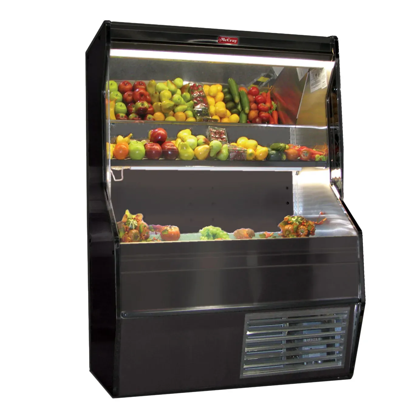 Upgrade your restaurant kitchen with the Howard-McCray SC-P32E-4S-B-LED Produce Open Merchandiser. This 50"W display case is designed to showcase your fresh produce in an enticing way. With its open front and LED lighting, your fruits and vegetables will be beautifully illuminated, attracting customers' attention and increasing sales. The self-contained refrigeration system ensures that your produce stays fresh and at the perfect temperature. The merchandiser features a center shelf and a 15" product reflecting mirror, allowing you to display a wide variety of items. The black exterior and interior give it a sleek and modern look that will complement any restaurant decor. With a 1/2 HP compressor and 115v/60/1-ph power supply, this merchandiser is powerful and efficient. It is also cULus, UL EPH Classified, and UL-Sanitation certified, guaranteeing its quality and safety. Upgrade your restaurant kitchen today with the Howard-McCray SC-P32E-4S-B-LED Produce Open Merchandiser and attract more customers with its stunning display capabilities.