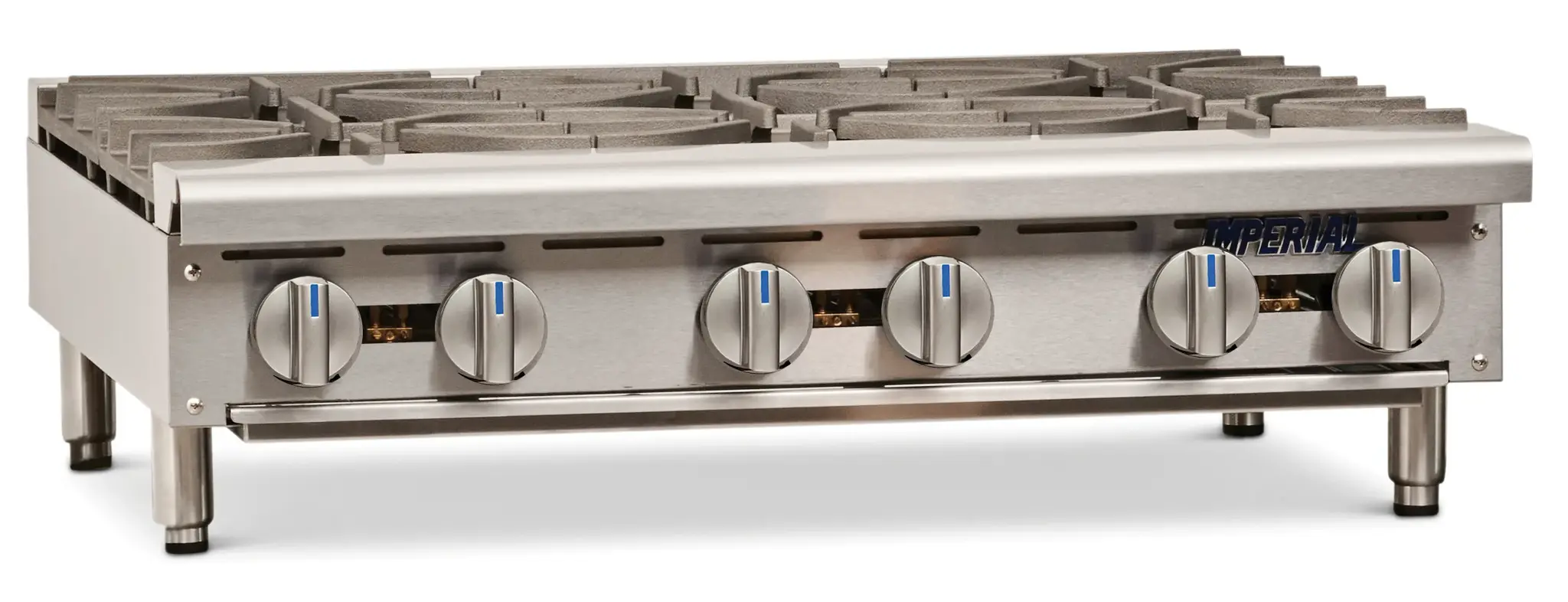 Experience kitchen innovation with the Imperial IHPA-2-12 Hotplate. This gas countertop hotplate is designed to meet the demands of a commercial restaurant kitchen. With two open burners and cast iron grates, this hotplate provides efficient and even heat distribution for cooking a variety of dishes. The removable crumb tray makes cleaning a breeze, while the stainless steel front, sides, and landing ledge ensure durability and easy maintenance. The adjustable feet allow for easy installation and stability on any countertop. With a powerful 64000 BTU output, this hotplate delivers exceptional cooking performance. It is CSA Flame, CSA Star, NSF, and CE certified, guaranteeing its safety and quality. Whether you're saut ing, simmering, or searing, the Imperial IHPA-2-12 Hotplate is the perfect addition to any commercial kitchen.