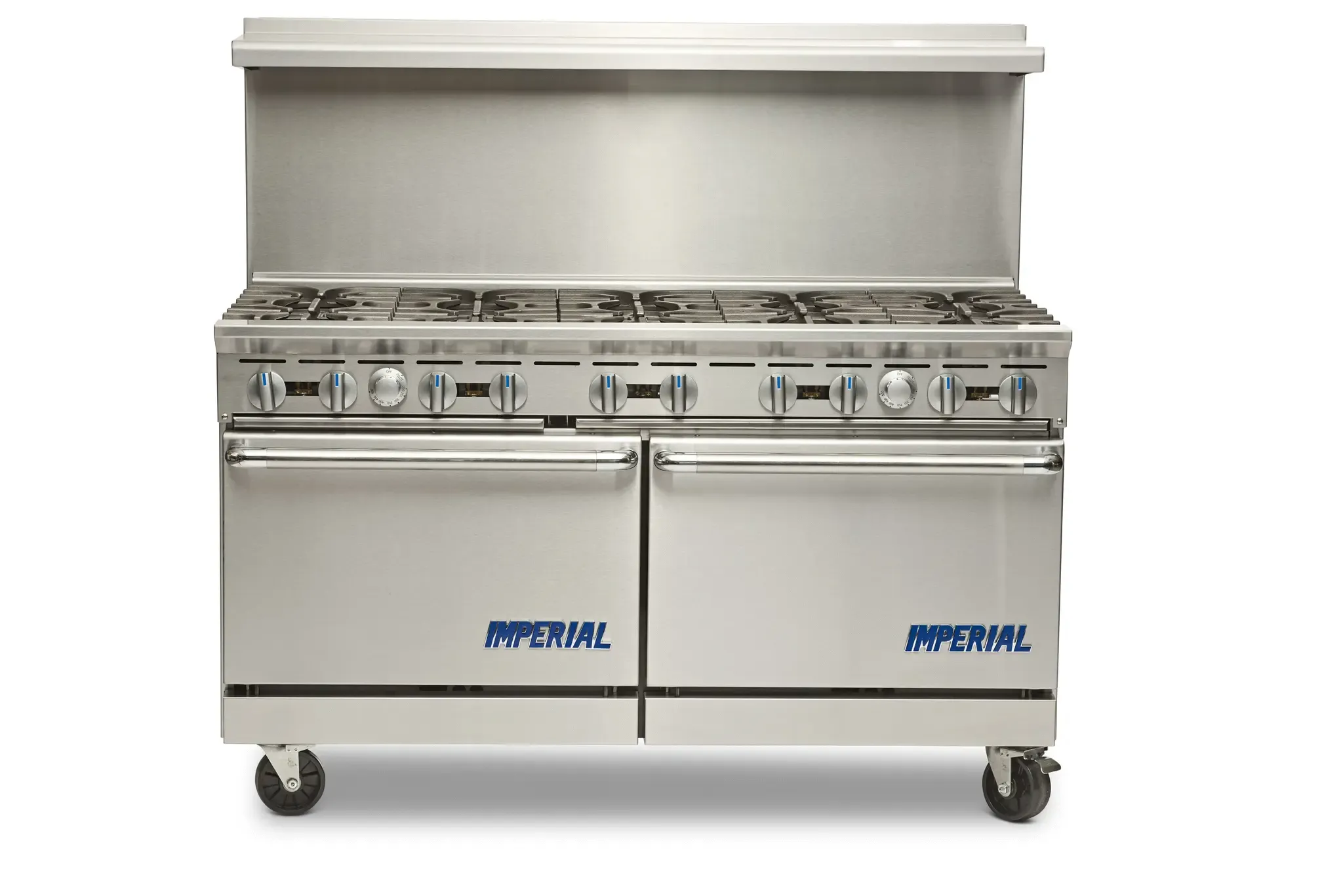 Introducing the Imperial IR-10-SU Range, a culinary powerhouse designed to craft culinary wonders in commercial restaurant kitchens. This 60" gas restaurant range is built to deliver exceptional performance and durability, making it an essential tool for any professional chef. With five 32,000 BTU open burners and two step-up open burners, this range provides precise heat control for cooking a variety of dishes simultaneously. The two standard ovens feature a chrome rack each, allowing for efficient baking and roasting. The stainless steel construction of the front, sides, backguard, shelf, landing ledge, and kick plate ensures long-lasting durability and easy cleaning. Equipped with a removable crumb tray and adjustable feet, this range offers convenience and flexibility in any kitchen layout. With a powerful 390,000 BTU output, NSF, CE, CSA Flame, and CSA Star certifications, the Imperial IR-10-SU Range is the perfect choice for commercial restaurants seeking a reliable and high-performance cooking solution.