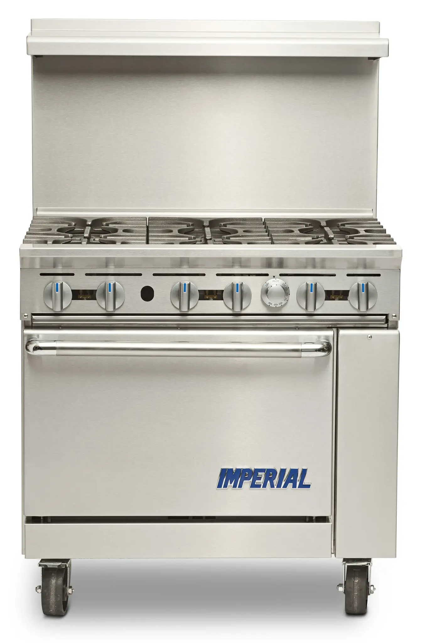 Equip your kitchen for success with the Imperial IR-2-G24-C Range. This 36" gas restaurant range is designed to meet the demands of a busy commercial kitchen. With two open burners and a 24" griddle, you have the versatility to cook a variety of dishes simultaneously. The convection oven features three chrome racks, allowing you to bake multiple items at once. The 3" grease trough, removable grease can, and crumb tray make cleaning a breeze, ensuring a sanitary cooking environment. Made with stainless steel front, sides, backguard, landing ledge, and kick plate, this range is built to withstand the rigors of a commercial kitchen. The adjustable feet and 6" legs provide stability and flexibility in any kitchen layout. With a powerful 1/4 HP and 134,000 BTU, this range delivers exceptional performance. NSF, CE, CSA Flame, and CSA Star certified, you can trust the quality and safety of this Imperial range. Upgrade your kitchen with the Imperial IR-2-G24-C Range and experience the difference in efficiency and productivity.