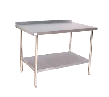 Introducing the Klingers Trading, 16GA-ABST3060, Work Table, 54"-62", Stainless Steel Top. This innovative resource is designed to optimize workflow in commercial restaurants. Crafted with a 16/430 stainless steel top, this work table provides a durable and hygienic surface for food preparation. The 2-inch rear up-turn and turned-down edges ensure that spills and messes are contained, making cleaning a breeze. Reinforced with three hat channels, this table offers exceptional strength and stability, perfect for heavy-duty use in a bustling kitchen. The stainless steel undershelf and legs provide additional storage space, allowing you to keep essential tools and ingredients within easy reach. With adjustable bullet feet, you can easily level the table on uneven surfaces. Whether you need a sturdy work surface for chopping, mixing, or plating, the Klingers Trading Work Table is the perfect addition to any commercial restaurant.