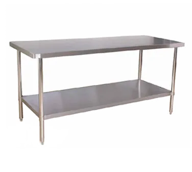 Upgrade your restaurant's workflow with the innovative resource of the Klingers Trading AST2484 Work Table. Designed specifically for commercial restaurant use, this work table is a game-changer in the kitchen. With its 18/430 stainless steel top and turned-down edges, it provides a durable and hygienic surface for food preparation. The stainless steel undershelf and legs offer additional storage space, allowing you to keep your kitchen organized and efficient. The adjustable bullet feet ensure stability on any surface, making it easy to find the perfect working height. Measuring 84"W x 24"D x 36"H, this work table provides ample space for multiple chefs to work simultaneously. Whether you're chopping vegetables, assembling dishes, or plating meals, the Klingers Trading AST2484 Work Table is the perfect addition to any commercial restaurant kitchen.