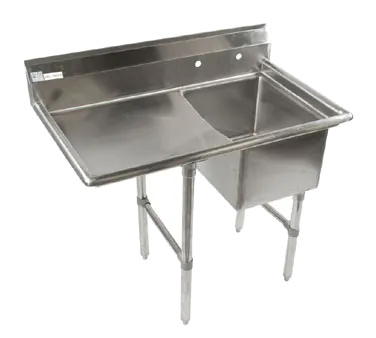 Modernize operations with the Klingers Trading ECS124DL Sink, designed specifically for commercial restaurant use. This economy sink features a single compartment, measuring 16"W x 20" front-to-back x 12" deep, providing ample space for washing dishes and utensils. The 18/304 stainless steel construction ensures durability and longevity, even in the busiest kitchen environments. With a 9" backsplash and 24" left drainboard, this sink offers convenience and efficiency, allowing for easy cleanup and organization. The stainless steel gussets, legs, crossbracing, and adjustable bullet feet provide stability and support. Additionally, the sink is equipped with 8" O.C splash mount faucet holes, allowing for easy installation of a faucet. Trust Klingers Trading to deliver a high-quality, reliable sink that will streamline your restaurant operations and withstand the demands of a busy kitchen.