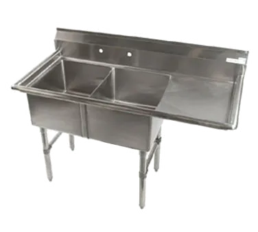Optimize efficiency with smart solutions in your commercial restaurant kitchen with the Klingers Trading ECS2DR Sink. This two-compartment sink is designed to streamline your dishwashing process, allowing you to handle a high volume of dishes with ease. Made from durable 18/304 stainless steel, this sink is built to withstand the demands of a busy kitchen. The two 16"W x 20" front-to-back x 11" deep bowls provide ample space for washing and rinsing, while the 9"H backsplash helps to keep your walls clean and protected. The 18" right drainboard offers a convenient area for drying dishes, and the 8" O.C splash mount faucet holes allow for easy installation of a faucet. With stainless steel gussets, legs, crossbracing, and adjustable bullet feet, this sink is stable and sturdy. Trust Klingers Trading for all your commercial restaurant sink needs.