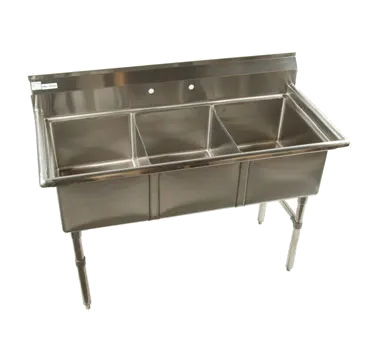 Equip your commercial restaurant for sustainability with the practical alternative of the Klingers Trading ECS3 Sink. This three-compartment sink is designed to meet the demands of a busy kitchen while promoting efficiency and cleanliness. Made from durable 18/304 stainless steel, this sink is built to withstand the rigors of daily use. The three 16" wide x 20" front-to-back x 11" deep compartments provide ample space for washing, rinsing, and sanitizing dishes, utensils, and cookware. With a 9" backsplash and 8" O.C splash mount faucet holes, this sink ensures a sanitary and organized workspace. The stainless steel gussets, legs, crossbracing, and adjustable bullet feet provide stability and support. ETL certified, this sink meets the highest standards of safety and quality. Upgrade your restaurant's kitchen with the Klingers Trading ECS3 Sink and experience the convenience and durability it offers.