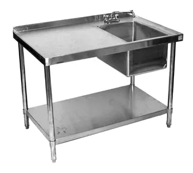 Revamp service with versatile option! Upgrade your commercial restaurant with the Klingers Trading STB2460BR Work Table with Prep Sink. This all-in-one solution is designed to enhance efficiency and functionality in your kitchen. The 18/304 stainless steel top with a marine edge and 2" rear backsplash ensures durability and easy cleaning, while the 14"W x 16" front-to-back x 11" deep sink bowl with a deck-mounted faucet and drain basket allows for convenient food preparation and cleanup. The adjustable stainless steel undershelf provides additional storage space, and the stainless steel legs with adjustable bullet feet ensure stability on any surface. With ETL-Sanitation certification, you can trust the quality and safety of this work table with prep sink. Upgrade your restaurant's workflow and create a seamless cooking experience with the Klingers Trading STB2460BR Work Table with Prep Sink.