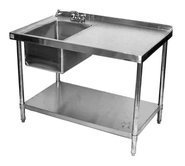 Revamp service with the Klingers Trading, STB2472BL Work Table with Prep Sink(s). This versatile option is perfect for commercial restaurant use, offering a convenient and efficient workspace. The 72"W x 24"D x 37"H overall dimensions provide ample space for food preparation, while the 18/304 stainless steel top with a marine edge and 2" rear backsplash ensures durability and easy cleaning. The sink on the left side features a 14"W x 16" front-to-back x 11" deep sink bowl with a deck-mounted faucet and drain basket, allowing for easy dishwashing and food prep. The adjustable stainless steel undershelf provides additional storage space, while the stainless steel legs and adjustable bullet feet ensure stability on any surface. ETL-Sanitation certified, this work table with prep sink(s) from Klingers Trading is a reliable and practical addition to any commercial kitchen.