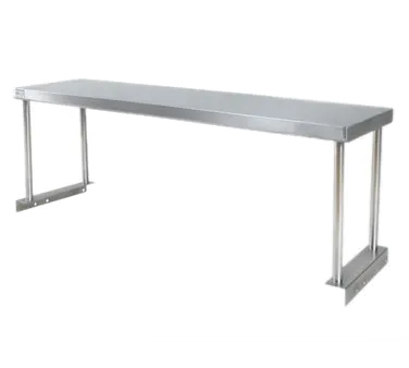 Modernize operations with the Klingers Trading, STO4H16 Overshelf, Table-Mounted. Crafted from durable 430 stainless steel, this single-tier overshelf is designed to enhance efficiency in commercial restaurant settings. Measuring 62"W x 16"D x 16"H, it provides ample space for storing essential items, making it perfect for sealed well and cold pan tables. The table-mount design ensures easy installation and stability, allowing you to maximize your workspace without sacrificing stability. With its sleek and modern design, this overshelf not only adds functionality but also enhances the aesthetics of your restaurant. Whether you need additional storage for utensils, condiments, or cookware, this Klingers Trading overshelf is the perfect solution. Upgrade your restaurant's organization and efficiency with the STO4H16 Overshelf, Table-Mounted.