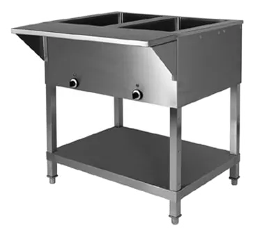 Modernize operations with the Klingers Trading SW2H120 Serving Counter. This electric hot food station is the smart choice for commercial restaurants looking to enhance efficiency and productivity. With its two 12" x 20" hot wells and individual thermostatic controls, you can easily keep different dishes at their optimal temperatures. The 18 gauge stainless steel undershelf provides durability and ample storage space for your kitchen essentials. The fiber glass insulation ensures energy efficiency, while the manifold drain assembly simplifies cleaning and maintenance. The 650 watts of power and 120v/60/1-ph, 20 amps electrical specifications guarantee reliable performance. Designed for convenience, this stationary table features a cord with NEMA 5-20P plug for easy installation. Trust Klingers Trading to deliver quality and functionality with the SW2H120 Serving Counter, perfect for modernizing your restaurant operations.