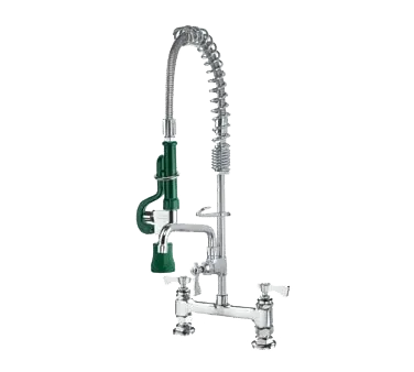 With its space-saving design, this pre-rinse faucet is perfect for maximizing efficiency in a commercial restaurant setting. The 8" center deck mount allows for easy installation, while the add-on faucet provides additional functionality. The 6" spout ensures precise water flow, making it ideal for rinsing dishes, utensils, and other kitchen equipment. Whether you're running a bustling restaurant or a small cafe, the Krowne Metal, 18-606L, Pre-Rinse Faucet is a must-have tool for any commercial kitchen. Upgrade your kitchen equipment today and experience the convenience and durability of this exceptional pre-rinse faucet.