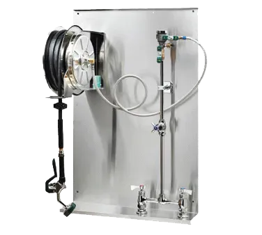 Discover kitchen perfection with Krowne Metal's 24-503 Plumbing Parts & Accessories. This open stainless steel hose reel assembly with an 8" center faucet is a must-have for any commercial restaurant. Designed by Krowne Metal, a trusted vendor in the industry, this product is built to last and withstand the demands of a busy kitchen. The stainless steel construction ensures durability and easy cleaning, while the 8" center faucet provides convenient access to water for various tasks. Whether you need to wash dishes, clean countertops, or fill large pots, this plumbing accessory is a reliable and efficient solution. Upgrade your restaurant's plumbing system with Krowne Metal's 24-503 and experience the difference in performance and durability.