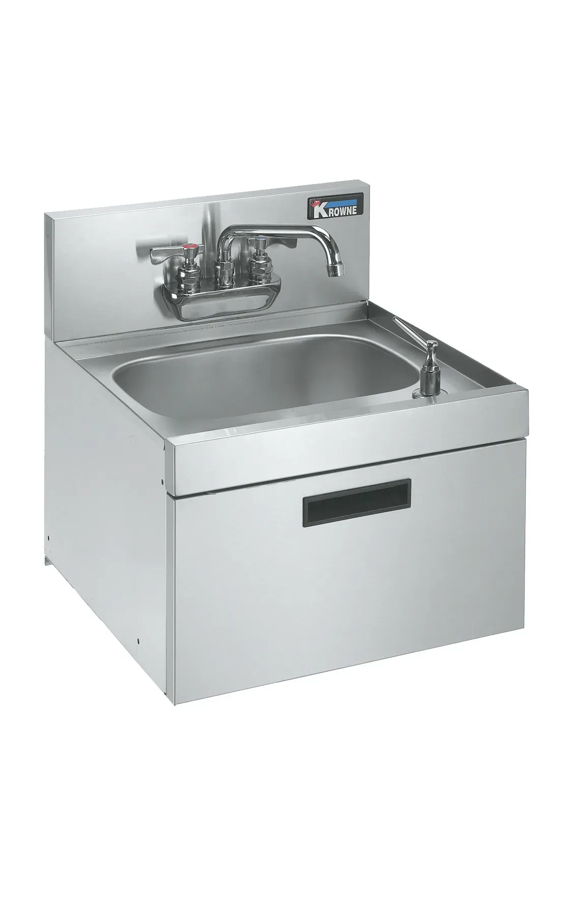 Cooking at its finest begins with the Krowne Metal KR19-18WST Bar Sink. This Royal Series 18" Wall Mount Hand Sink with Soap & Towel Dispenser is a must-have for any commercial restaurant. With its stainless steel construction, this sink is built to withstand the demands of a busy kitchen. The 14"W x 10"D front-to-back x 7" deep sink bowl provides ample space for washing hands and utensils. The 4" OC splash mount Royal Series faucet with swing spout ensures easy access to water. But what sets this sink apart is the built-in soap and towel dispenser, making it convenient for staff to maintain proper hygiene. NSF certified, this sink meets the highest standards of cleanliness and safety. Whether it's for food prep or dishwashing, the Krowne Metal KR19-18WST Bar Sink is the perfect addition to any commercial kitchen.