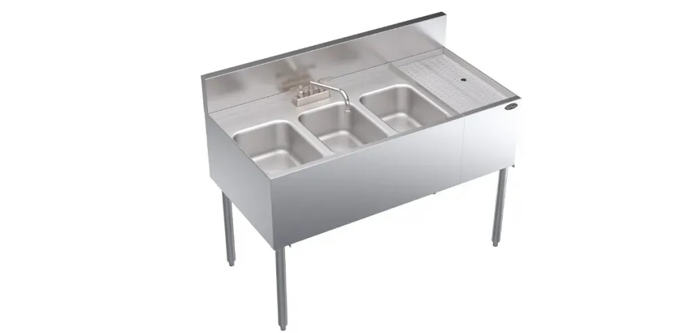 Introducing the Krowne Metal KR24-32L Bar Sink, the perfect addition to dominate the culinary world in any commercial restaurant. This high-quality sink is designed to meet the demands of a busy kitchen, offering exceptional durability and functionality. With its 36"W x 24"D size and two-bowl design, this underbar sink provides ample space for washing and rinsing dishes, utensils, and glassware. The 12" drainboard adds convenience and efficiency to your workflow, allowing you to easily dry and stack items. Crafted by Krowne Metal, a trusted name in the industry, this bar sink is built to last and withstand the rigors of a bustling restaurant environment. Whether you're running a bar, pub, or restaurant, the Krowne Metal KR24-32L Bar Sink is the ultimate choice for maintaining cleanliness and efficiency in your establishment.