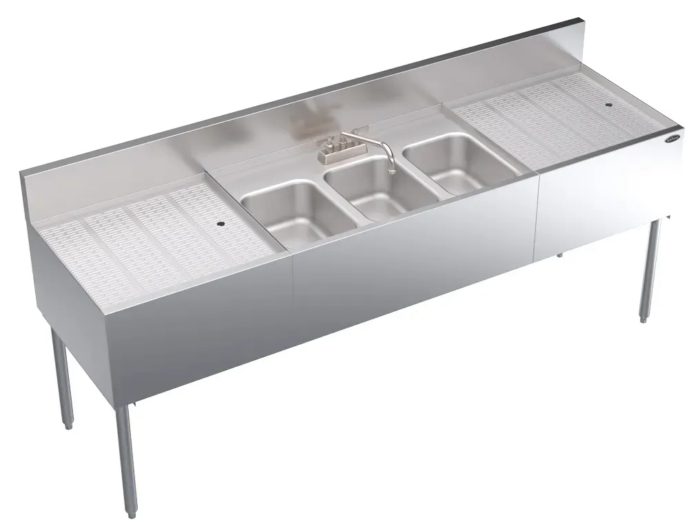 Elevate your cuisine with the Krowne Metal KR24-73C Bar Sink. This 24" x 84" 3-bay sink is the perfect addition to any commercial restaurant kitchen. With its spacious design and three bowls, you'll have plenty of room to wash and rinse dishes, utensils, and cookware. The two 24" drainboards provide additional space for drying and organizing your kitchen essentials. Made by Krowne Metal, a trusted vendor in the industry, this bar sink is built to last. Its durable construction ensures long-lasting performance, even in the busiest of kitchens. The Krowne Metal KR24-73C Bar Sink is packed with features that make it ideal for commercial restaurant use. Its large size and multiple compartments allow for efficient dishwashing and food preparation. Invest in this high-quality bar sink and experience the convenience and functionality it brings to your restaurant kitchen.