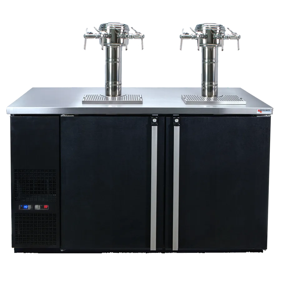 Discover kitchen perfection with the Micro Matic USA, MDD58W-E-E Wine Cooler Dispenser. This Pro-Line E-Series Dual Temperature Wine Cooler Dispenser is designed to meet the needs of commercial restaurants. With its spacious two-section design, it can accommodate up to 8 1/6 barrel kegs, ensuring you always have a variety of wines on tap for your customers to enjoy. The two solid hinged doors come with locks for added security, while the sommelier wine fonts with side pull faucets provide a stylish and convenient way to serve wine. The stainless steel drip tray and LED digital temperature displays add to the overall functionality of this wine cooler dispenser. Additionally, the automatic condensate evaporator and back ventilated design ensure efficient operation. With its ENERGY STAR certification, this wine cooler dispenser is not only reliable but also energy-efficient. Elevate your restaurant's wine service with the Micro Matic USA, MDD58W-E-E Wine Cooler Dispenser.