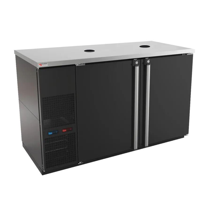 Elevate your dining experience with the Micro Matic USA, MDD58WLT-E Wine Cooler Dispenser. This Pro-Line E-Series Dual Temperature Wine Cooler Dispenser is perfect for commercial restaurant use. With its two-section design and 59-1/2" width, it offers ample space to store and dispense your favorite wines. The self-contained refrigeration system ensures optimal temperature control, while the LED digital temperature displays allow for easy monitoring. The solid hinged doors with locks provide security for your valuable wine collection. The front ventilation and automatic condensate evaporator ensure efficient operation and hassle-free maintenance. Made with a stainless steel interior and top, and a black vinyl over steel exterior, this wine cooler dispenser is not only durable but also visually appealing. It is ENERGY STAR certified, making it an energy-efficient choice for your restaurant. Tapping equipment is sold separately, allowing you to customize the dispenser to your specific needs. Trust Micro Matic USA for quality and reliability in wine cooler dispensers.