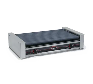 Transform Your Culinary Space with the Nemco 8036SX-230 Hot Dog Grill. This Roll-A-Grill is designed to meet the demands of a busy commercial restaurant. With 10 GripsIt coated rollers, it can cook up to 36 hot dogs at a time, serving a whopping 720 hot dogs per hour. The aluminum and stainless steel construction ensures durability and easy cleaning, while the two 7-setting heat control switches allow for precise temperature adjustments. Equipped with two motors and 1500 watts of power, this grill delivers consistent and efficient cooking performance. The Nemco 8036SX-230 operates on 230v/50hz and 6.5 amps, making it suitable for international use. With its SCHUKO CEE-7/7 plug, it's ready to be plugged in and put to work in your restaurant. Elevate your hot dog game and satisfy your customers with this high-quality hot dog grill from Nemco.