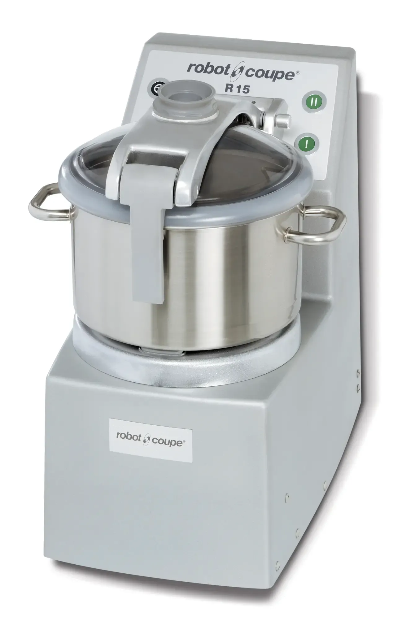 Enhance your commercial kitchen with the Robot Coupe R15 Mixer, Vertical Cutter VCM. This bench-style cutter/mixer is designed to meet the demands of a busy restaurant kitchen. With its 15-liter stainless steel bowl and handles, it offers ample capacity for large batches of ingredients. The three stainless steel smooth edge "S" blade assembly ensures efficient and consistent cutting, while the pulse function allows for precise control. The R15 operates at two speeds, 1800/3600 RPM, giving you the flexibility to handle a variety of tasks. Powered by a 4.5 HP motor, this mixer is built to handle heavy-duty use. It is also equipped with a NEMA L15-20P plug for easy installation. With its cETLus and ETL-Sanitation certifications, you can trust the quality and safety of this Robot Coupe mixer. Upgrade your kitchen with the reliable and powerful R15 Mixer, Vertical Cutter VCM.