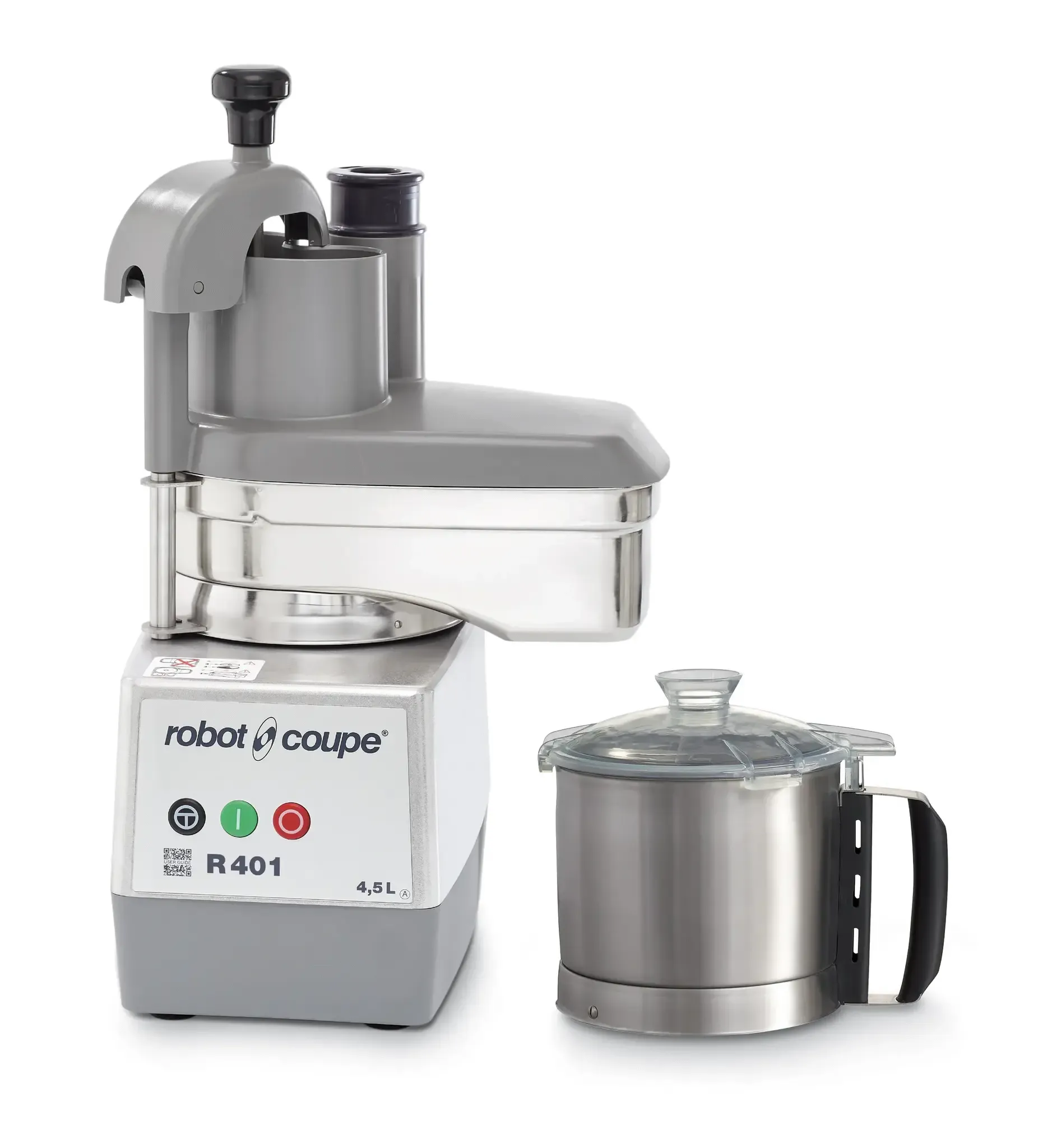 Master the art of flavor with the Robot Coupe R401 Food Processor. This benchtop/countertop food processor is a must-have for any commercial restaurant. With its combination food processor and 4.5-liter stainless steel bowl, it can handle large quantities of ingredients with ease. The continuous feed kit, complete with kidney-shaped and cylindrical-shaped hoppers, allows for efficient and continuous processing.
