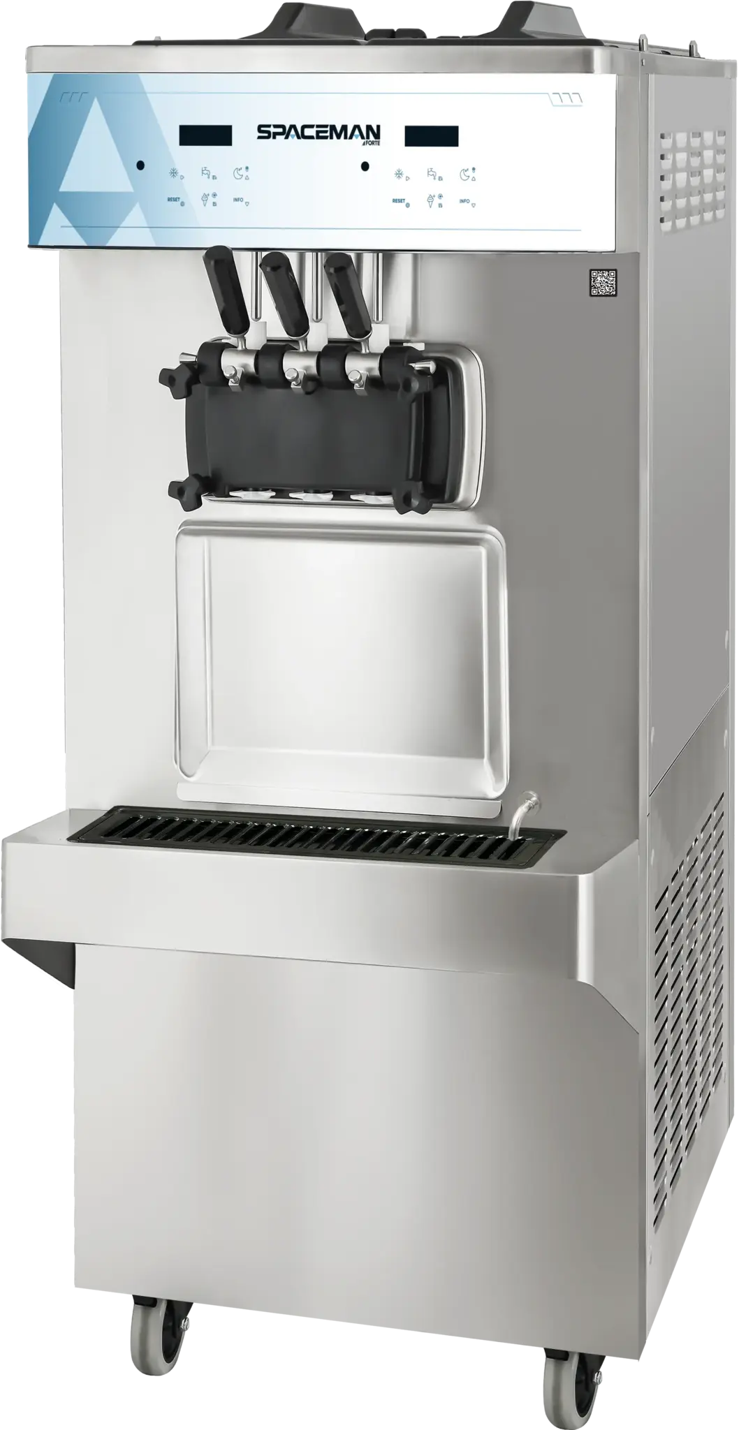 At the heart of its performance is Spaceman’s patented 100% Controlled Contact Flooded Evaporator, designed for maximum efficiency and delivering the industry’s fastest freeze-down and recovery times with smaller ice crystals and the smoothest, creamiest mouthfeel. Continuous improvements in design, based on operator feedback and R&D, further enhance structural integrity, serviceability, and long-term reliability. The advanced V5 single-piece auger eliminates unnecessary parts, reduces cleaning time, ensures 100% evaporator wall contact, and enhances product consistency with the smallest ice crystals in the industry. The dual-system gravity-fed air inlet works in tandem with the V5 auger to optimize overrun and deliver the best long-term texture and quality available.