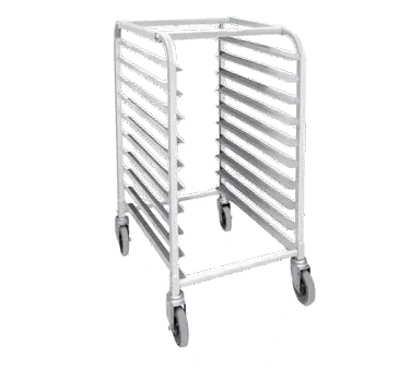 Enhance efficiency with the Thunder Group ALSPR010 Pan Rack, Bun. This round top design rack is perfect for commercial restaurant use, offering a convenient and space-saving solution for storing and transporting pans. With the ability to hold 10 full-size or 20 half-size pans, this rack maximizes storage capacity while keeping your kitchen organized. The aluminum tubing and crossbars provide durability and stability, ensuring that your pans are securely held in place. The rack is equipped with four 5" swivel casters, two of which are locking, allowing for easy maneuverability and stability when needed. Assembly is required, but the straightforward design makes it a quick and hassle-free process. NSF certified, this pan rack meets the highest standards of safety and sanitation. Upgrade your restaurant's efficiency with the Thunder Group ALSPR010 Pan Rack, Bun.