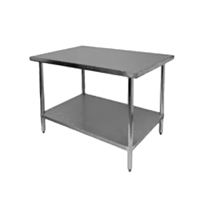 Enhance usability with the Thunder Group SLWT43072F Work Table. This stainless steel table is designed to meet the demands of a commercial restaurant setting. With its 18 gauge/430 stainless steel flat top and turn-down edges, it provides a durable and easy-to-clean surface for food preparation. The galvanized steel adjustable undershelf and legs offer additional storage space and stability. The table also features 1" adjustable plastic bullet feet, allowing you to level it on uneven floors. NSF certified, this work table meets the highest standards of cleanliness and safety. Whether you need a sturdy surface for chopping vegetables or a place to assemble dishes, the Thunder Group SLWT43072F Work Table is the perfect addition to your restaurant kitchen. Trust Thunder Group, a reputable vendor in the industry, to deliver quality and reliability with every product.